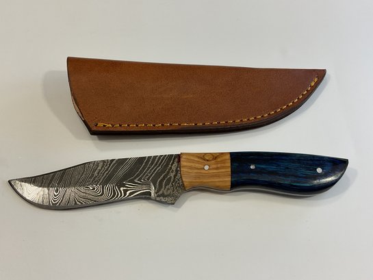 New Damascus 8 Inch Fixed Blade Knife W/ Sheath