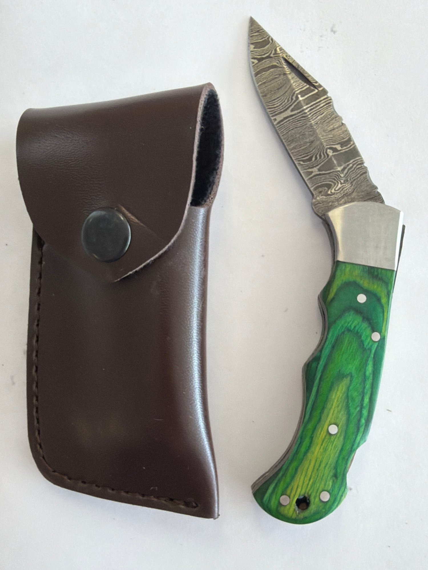 NEW Damascus Folding Knife W Sheath