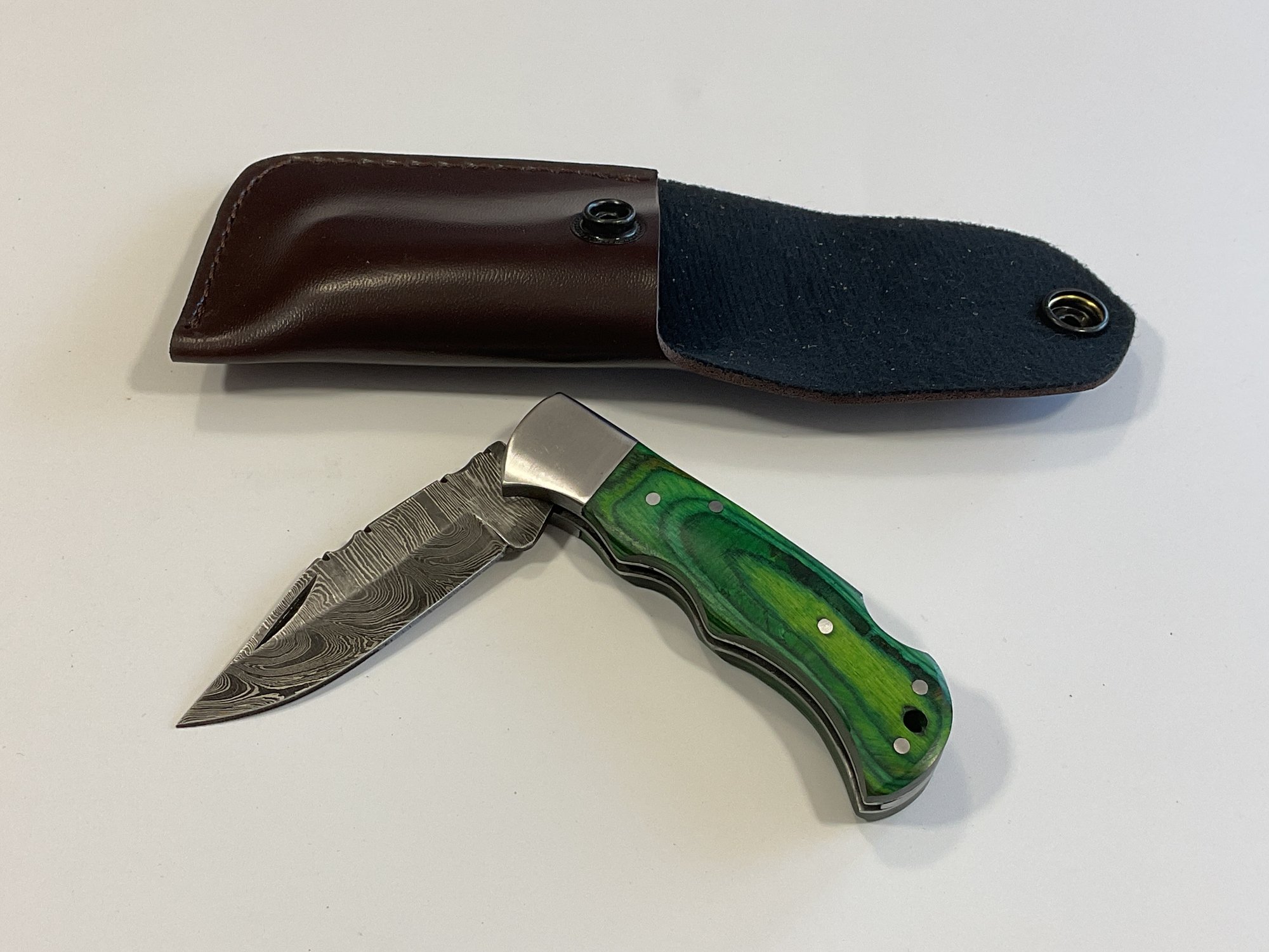 New Damascus Folding Knife W/ Sheath