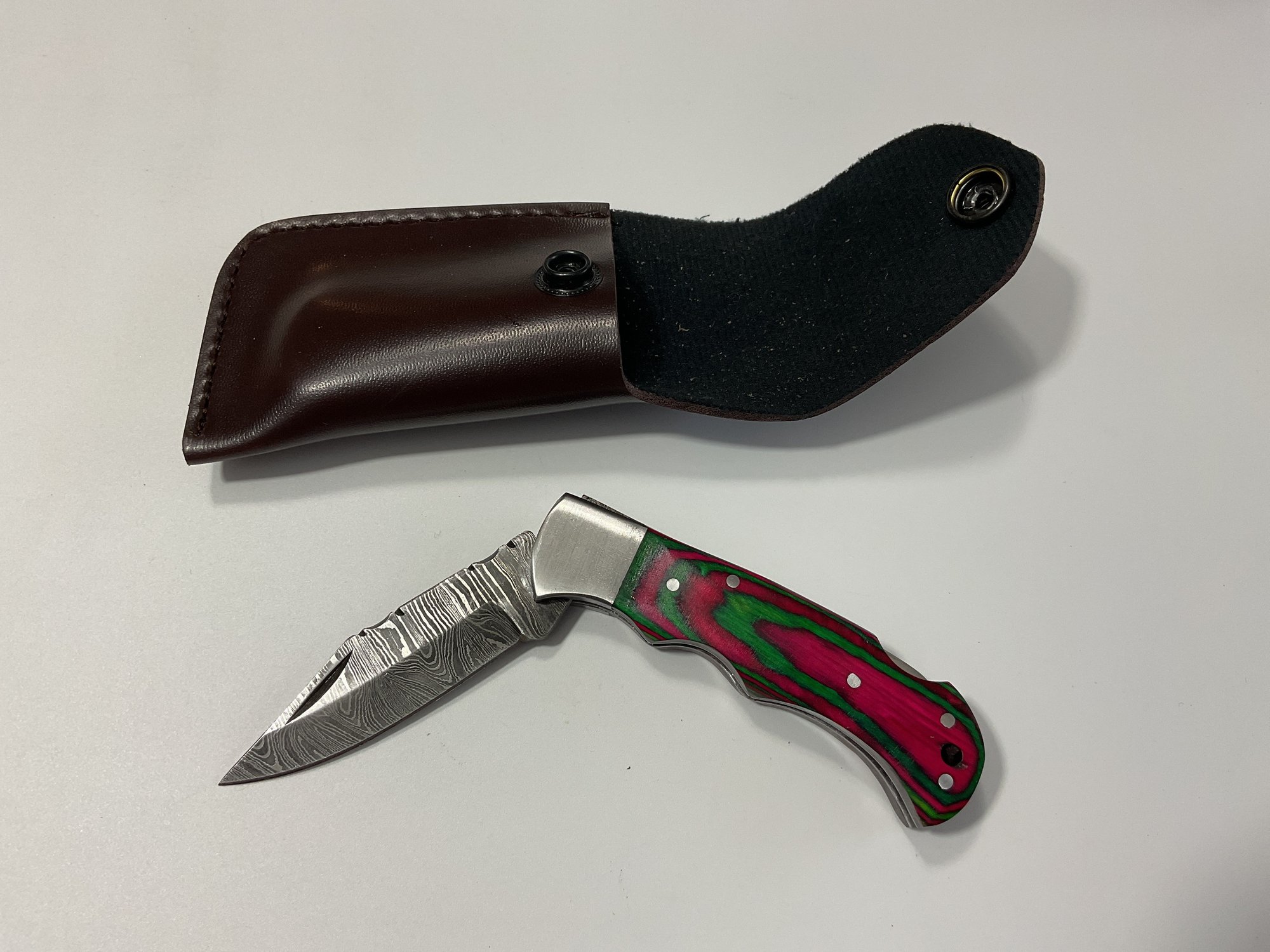 New Damascus Folding Knife With Sheath