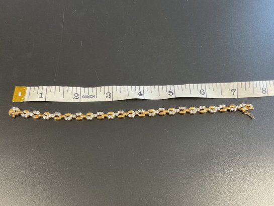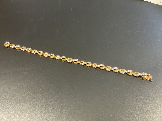 Sterling Silver Gold Colored Bracelet W/ Clear Stones