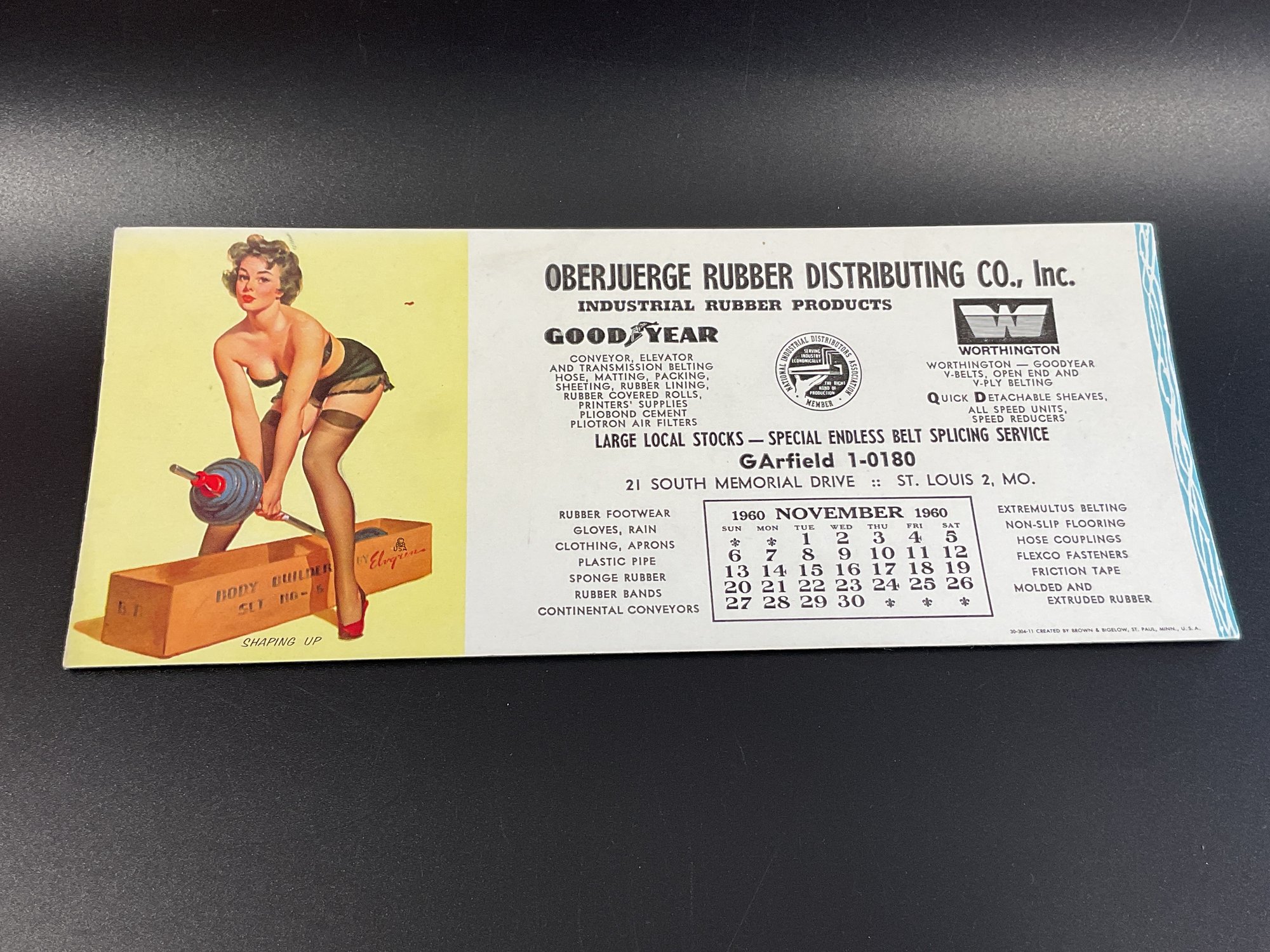 Vintage November 1960 Gas Station Advertisement Calendar