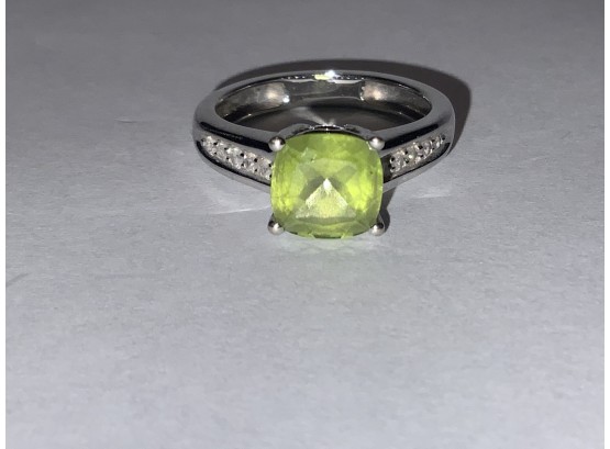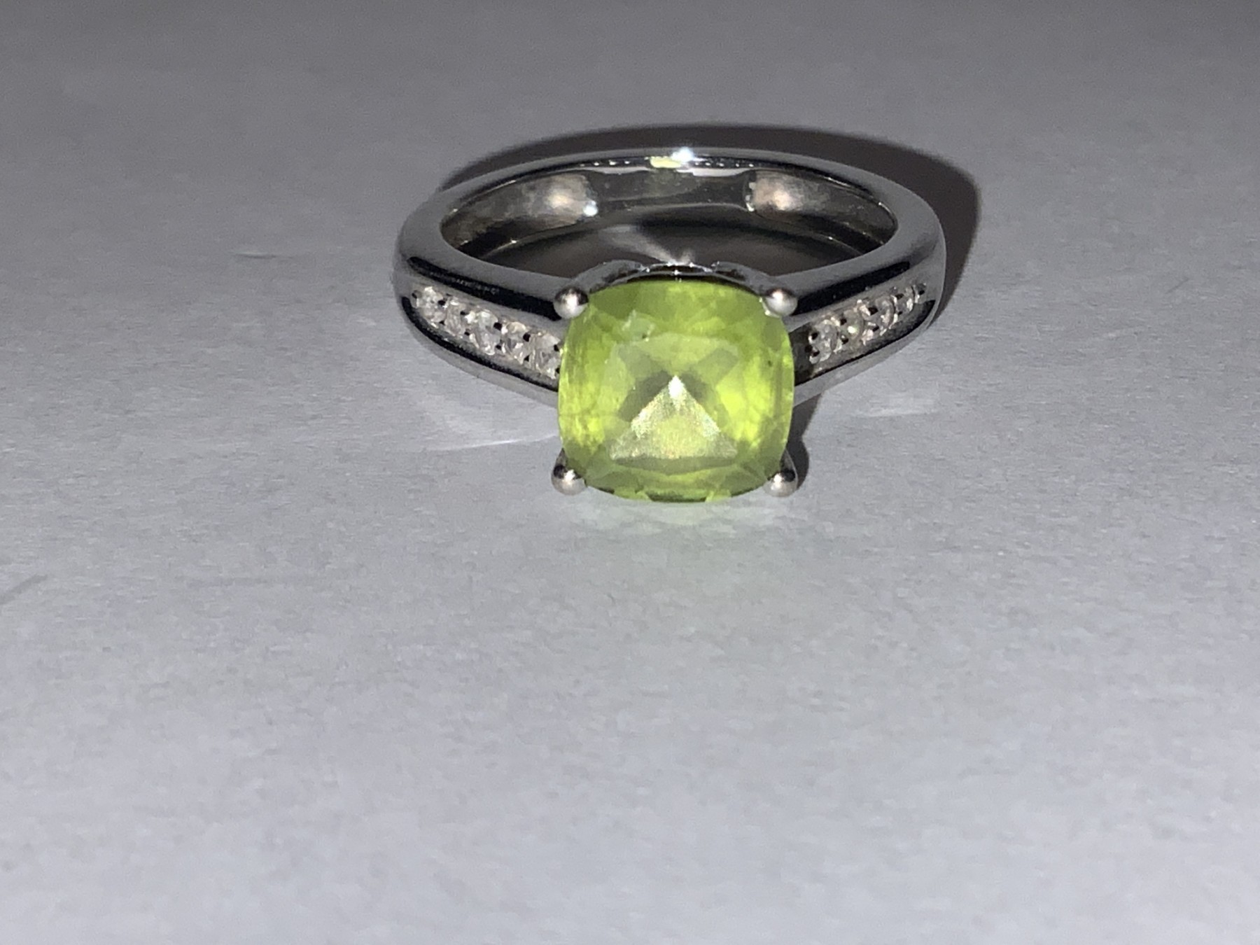 10kt White Gold Peridot And Diamond Ring