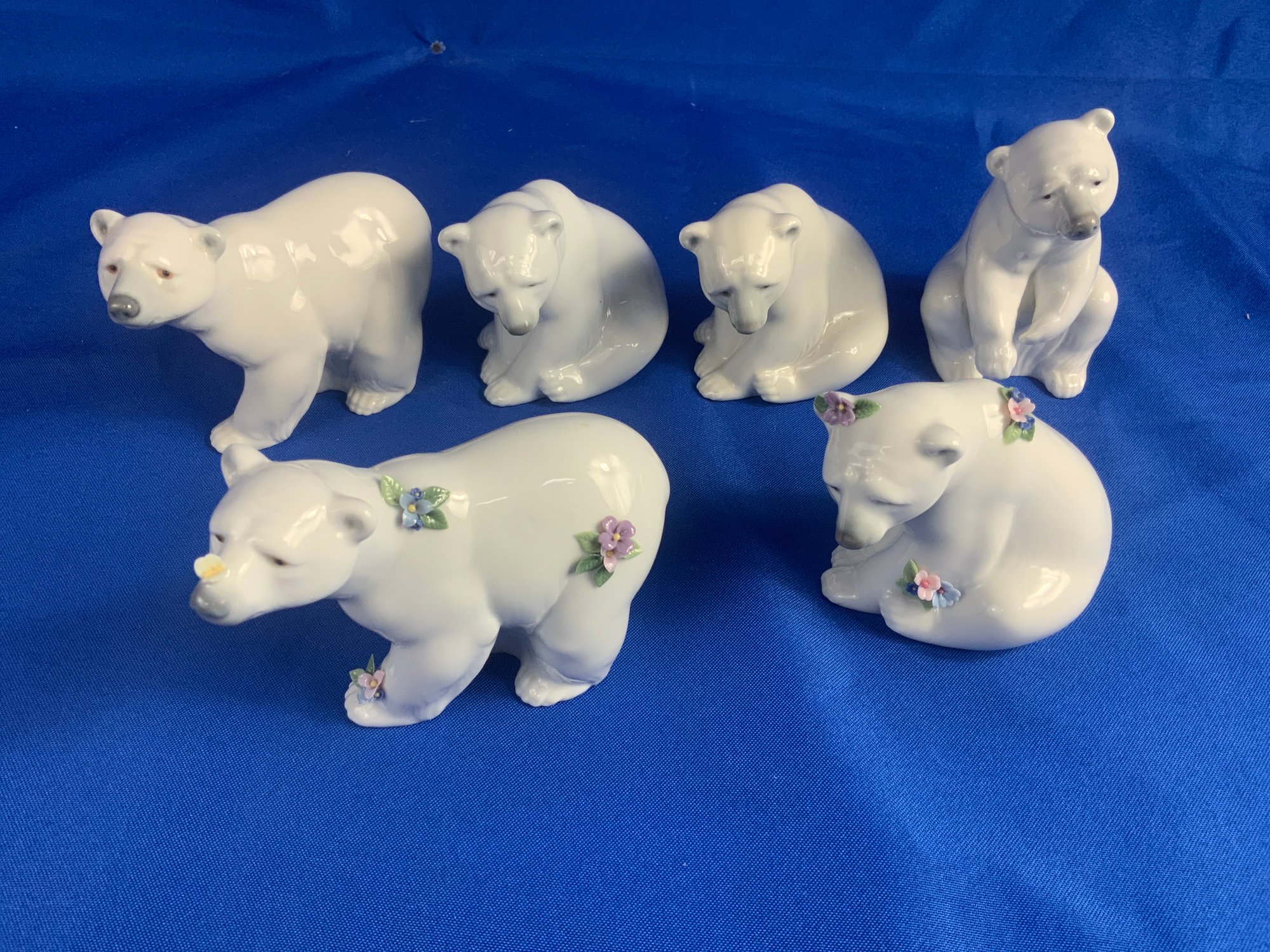 6 Lladro Polar Bears Some With Flowers