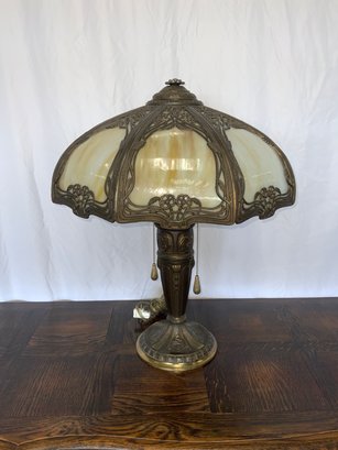 Antique 8 Panel Carmel Glass Victorian Table Lamp