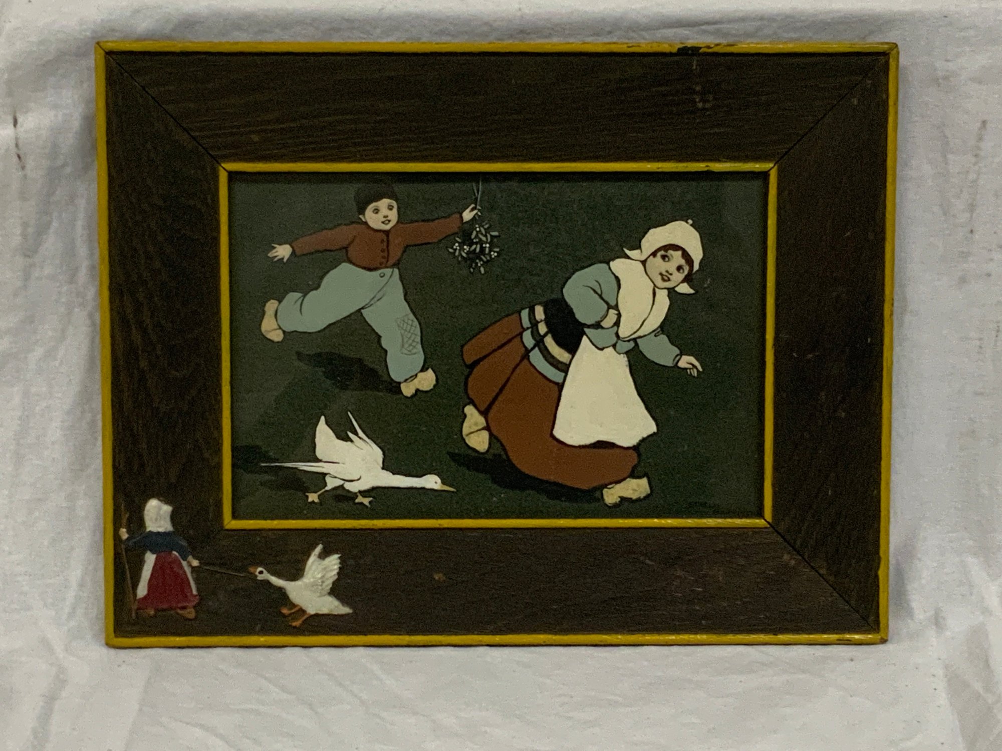 Ethel Parkinson Nursery Prints Original Oak Framed Litho Circa 1900 Dutch Children Playing