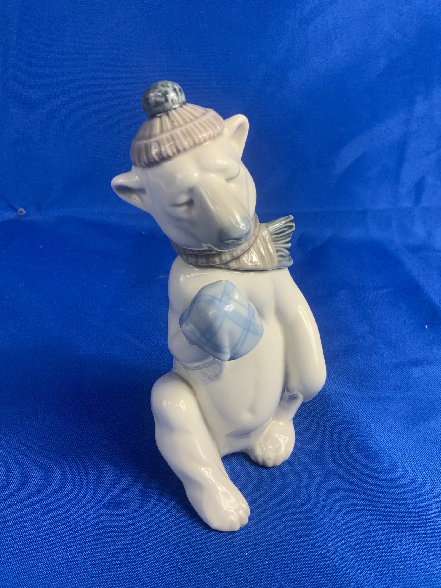 Lladro Porcelain Polar Bear With Hat And Scarf Blowing its nose