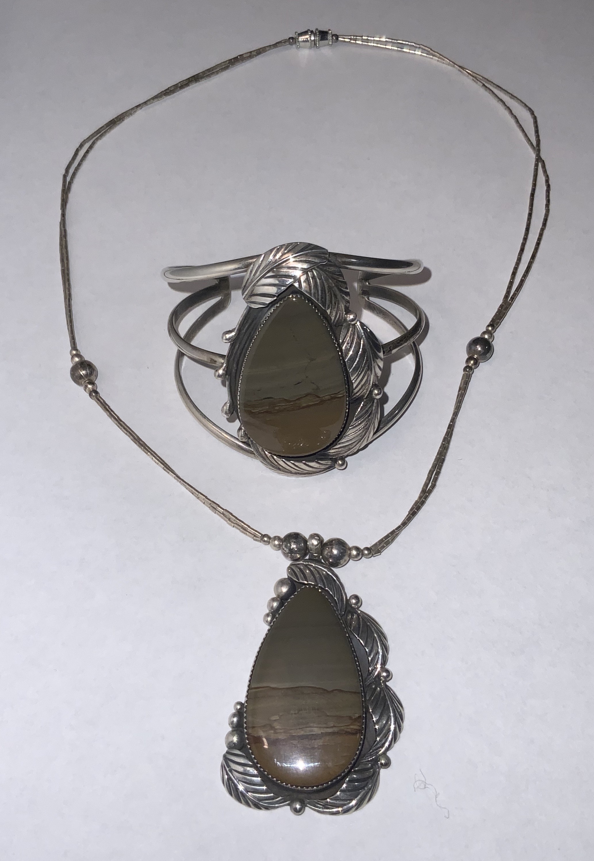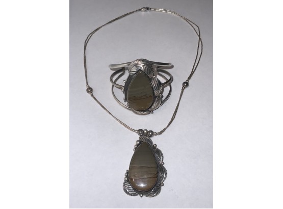 Two Piece Signed Dave Scott? Navajo Sterling Silver Pendant And Cuff Bracelet