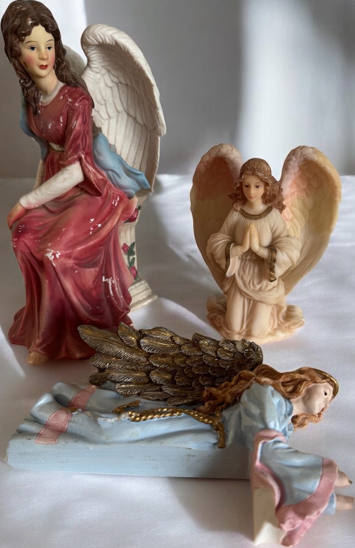 3 ceramic angel statues
