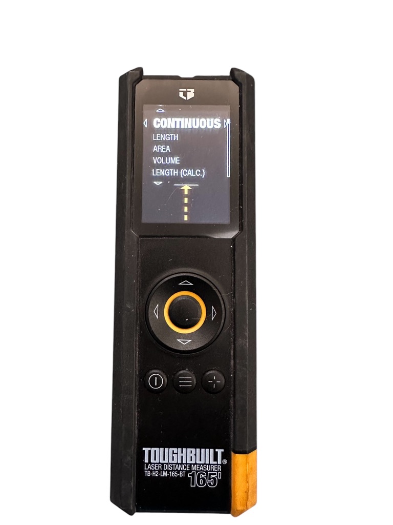 ToughBuild Laser Measurer, model TB-H2-LM-165-BT, 2" - 165', length, area, volume, angle (level), bluetooth, metric/ft, instructional manual