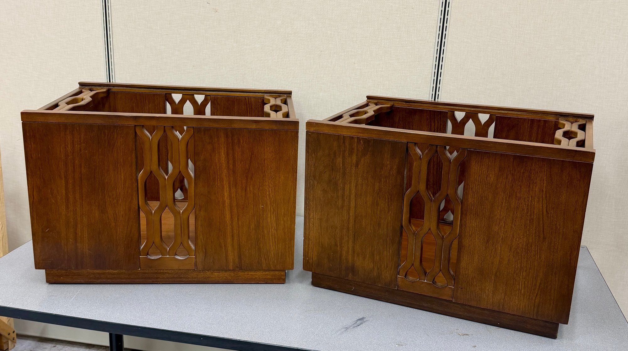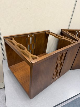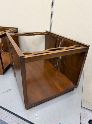 Pair Brutalist Glass Top End Tables
