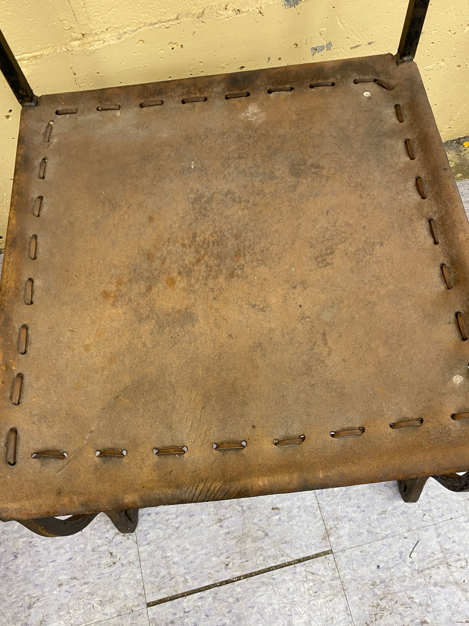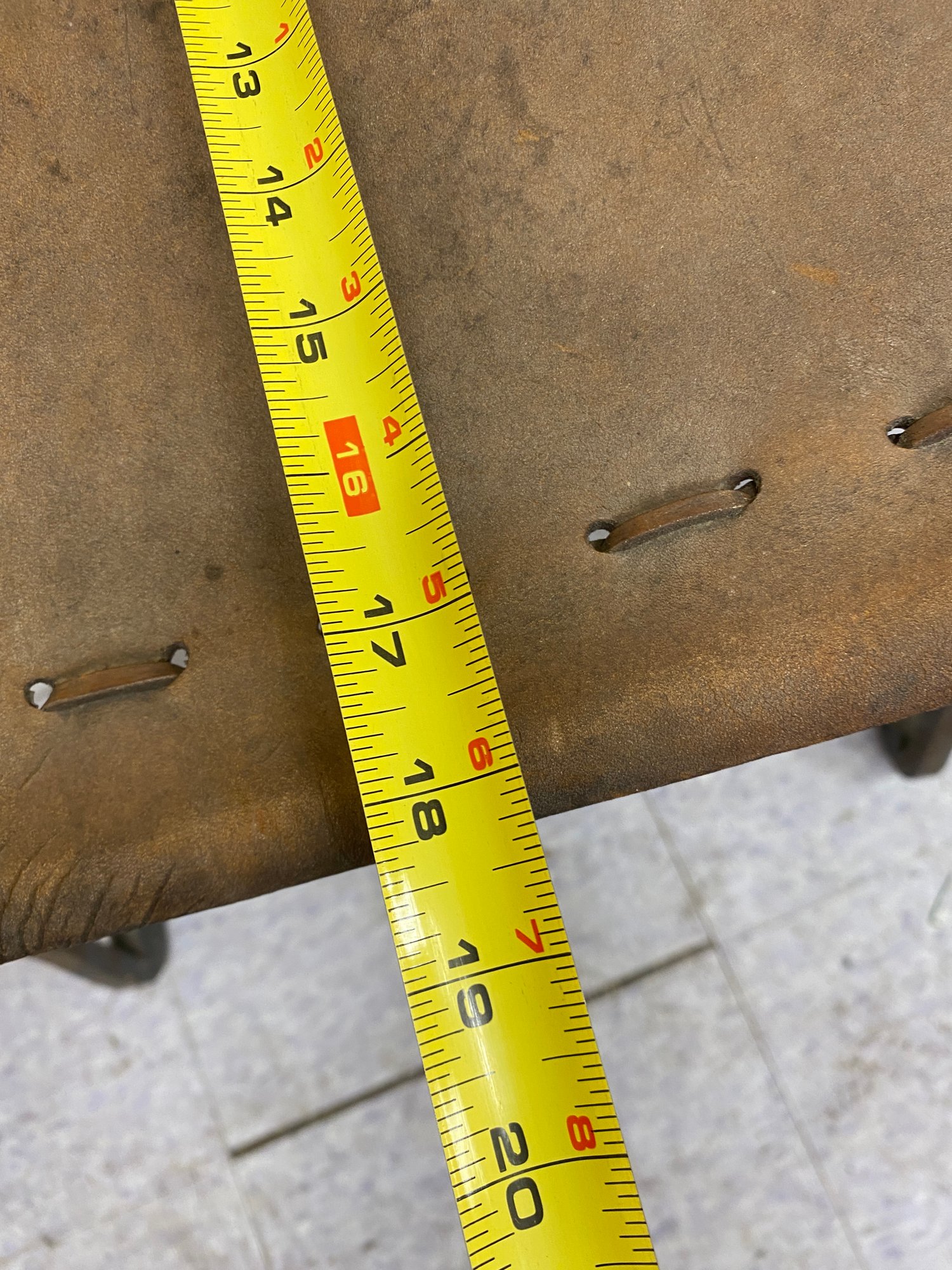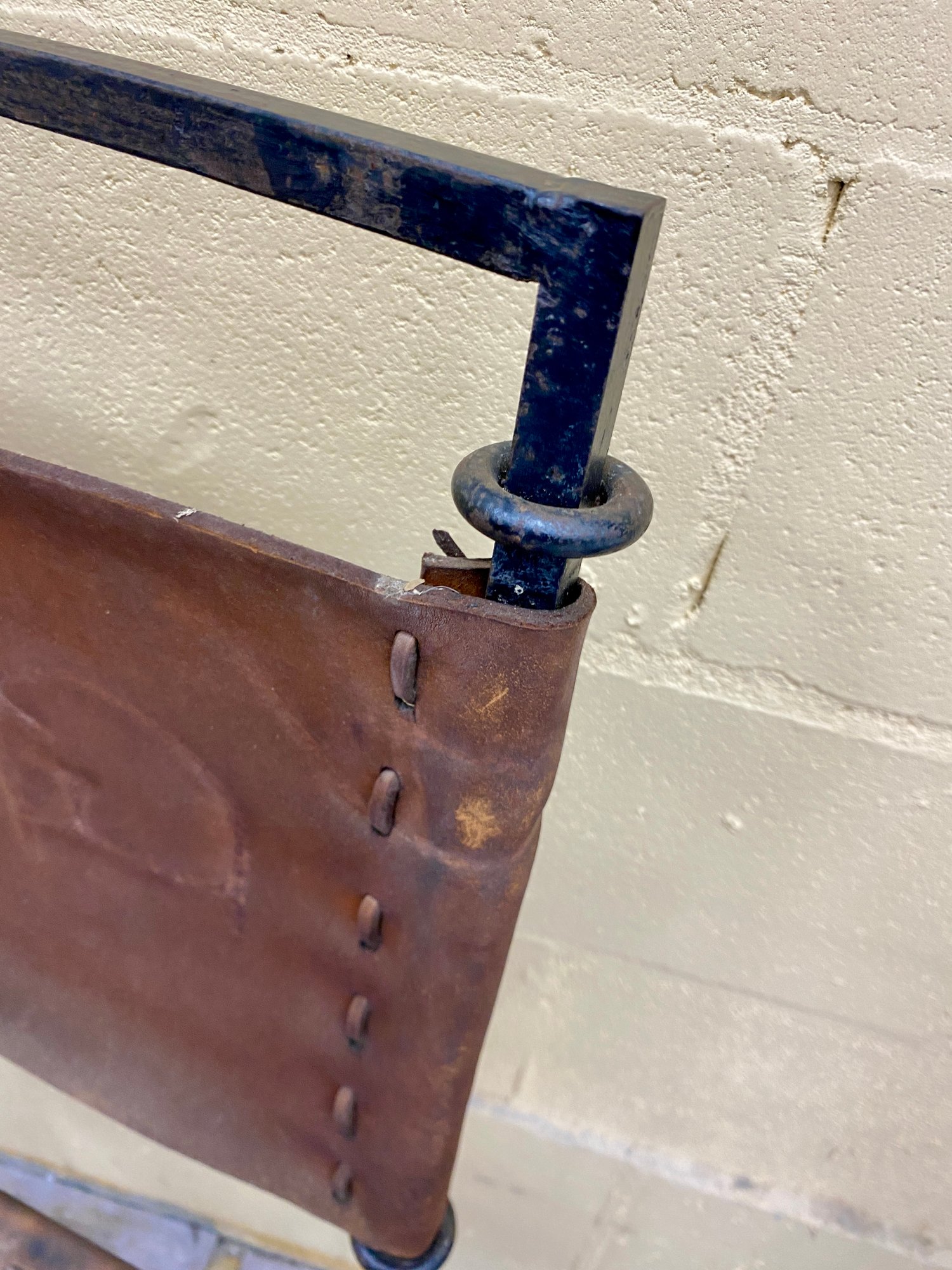 Wear and staining to leather...some oxidation to metal.....otherwise structurally sound...please see all 13 photos for complete assessment and size