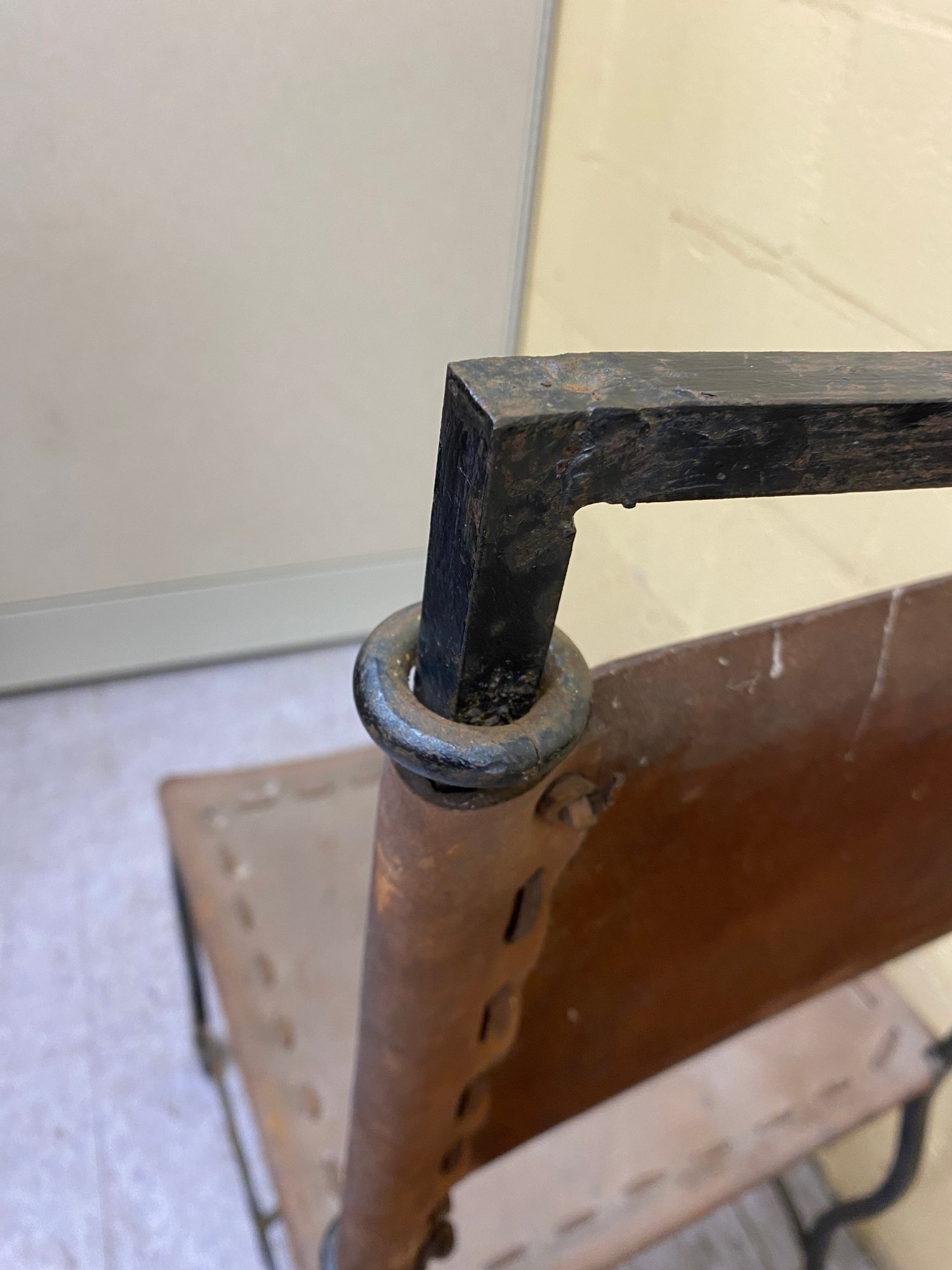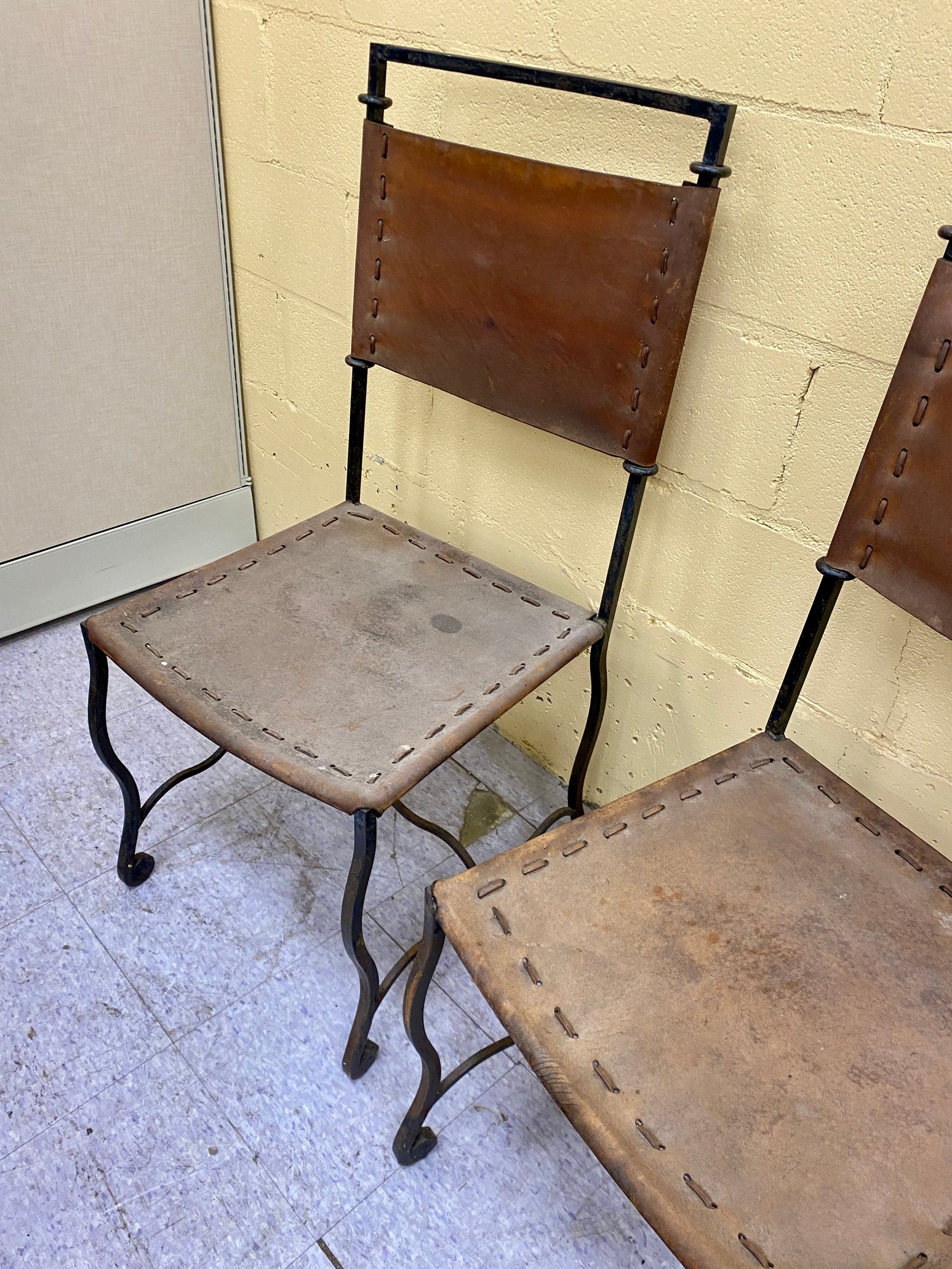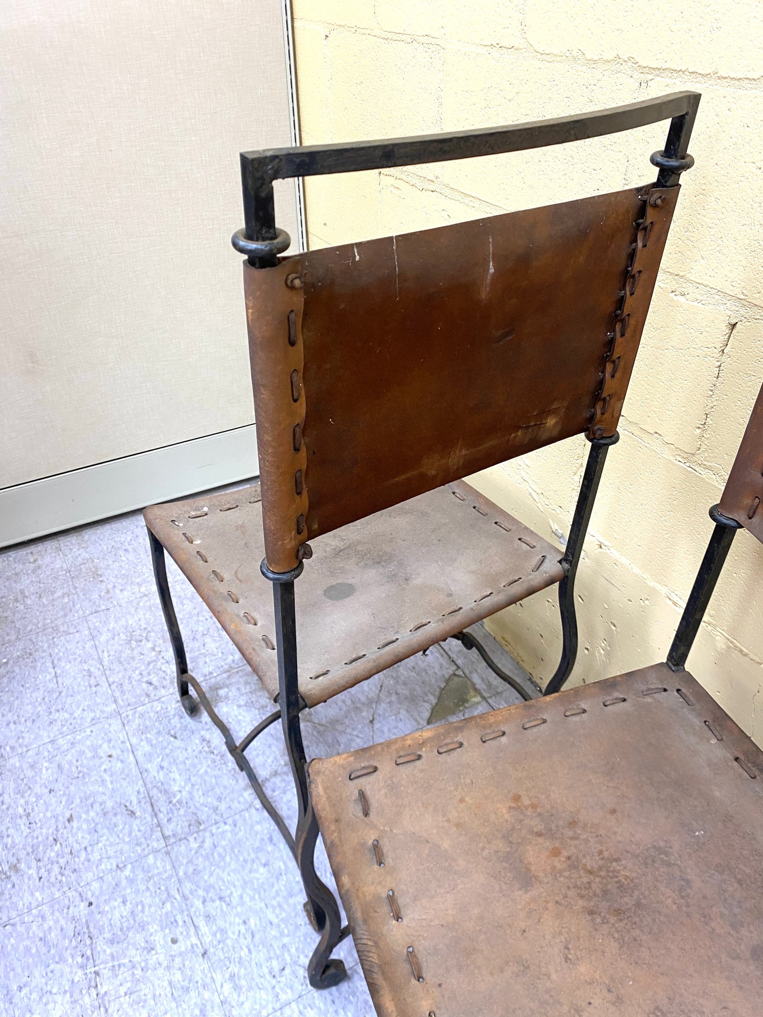 Wear and staining to leather...some oxidation to metal.....otherwise structurally sound...please see all 13 photos for complete assessment and size