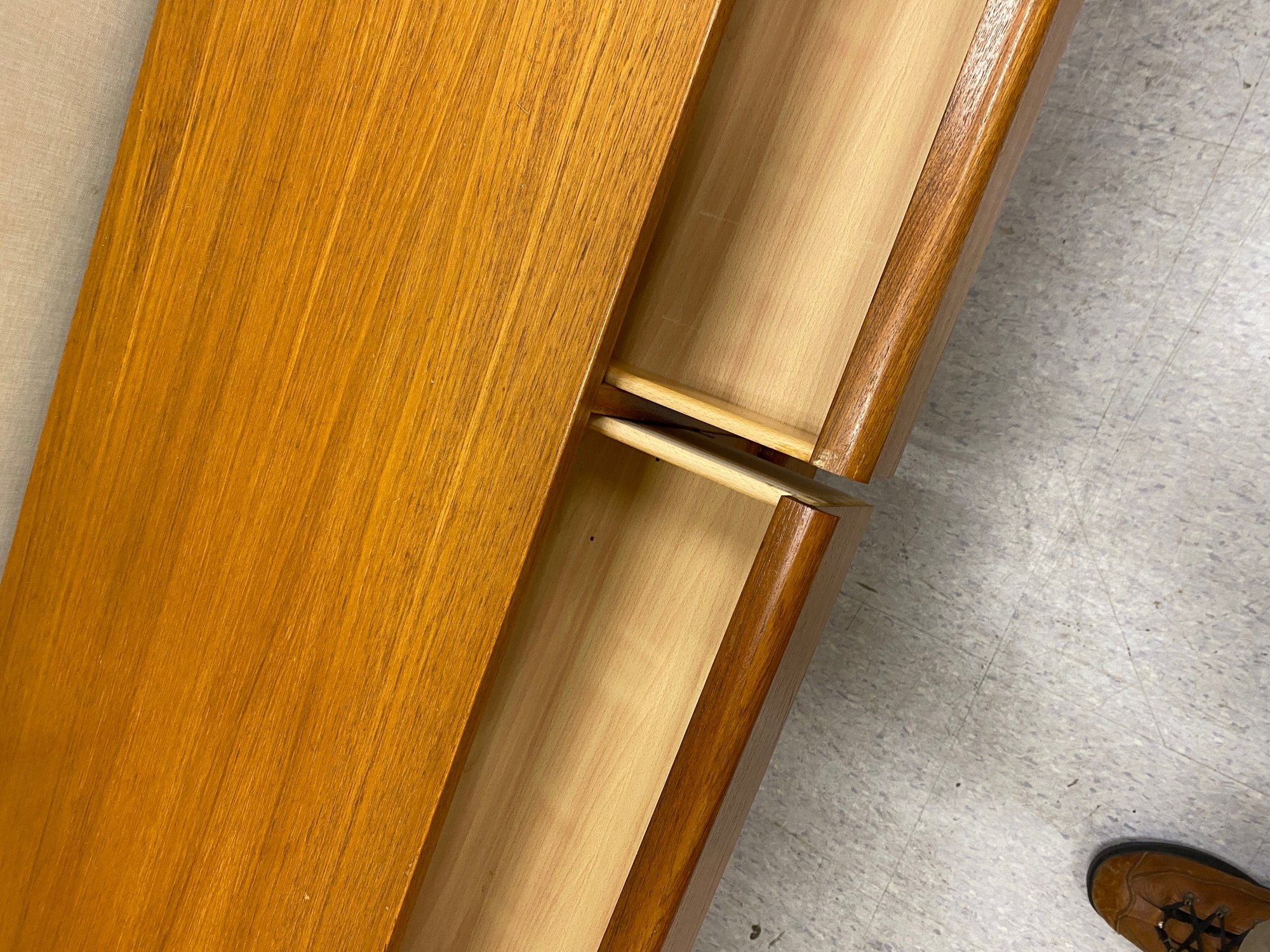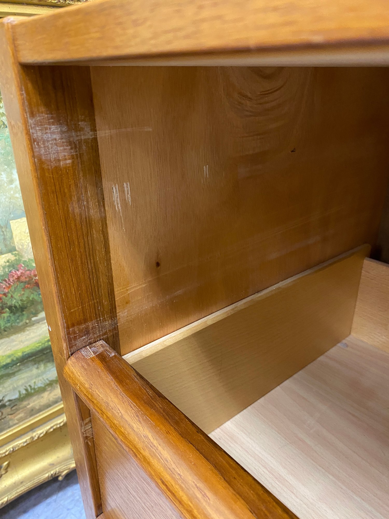 Surface stain on top ……some drawer runners lacking and will need replacing for drawers to fully function…. Easy repair….see images