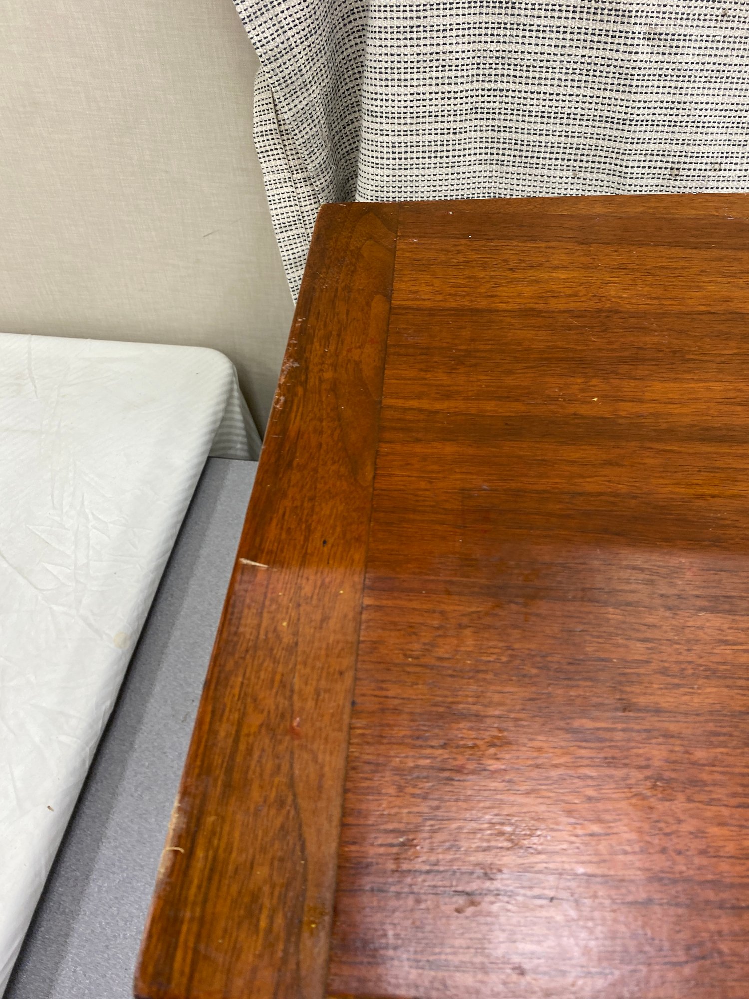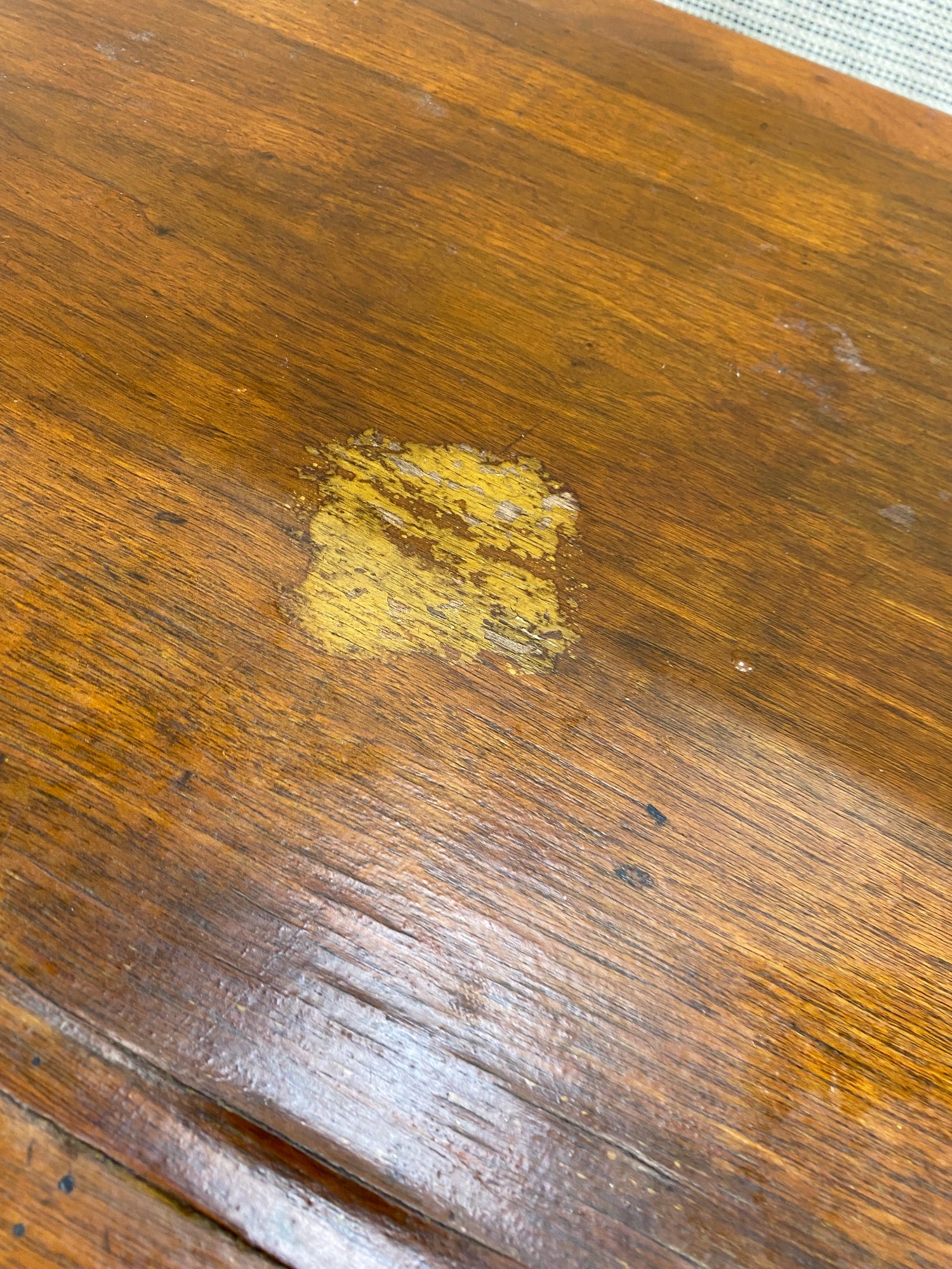 The top with veneer lifting and stains…. would benefit from restoration…. please see new photos with measurements