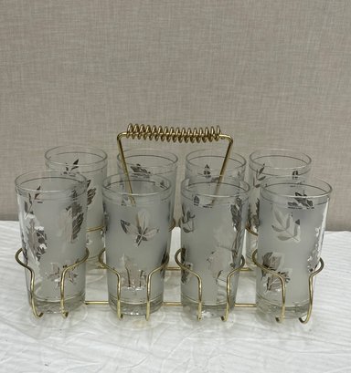 Mid Century Glasses And Holder