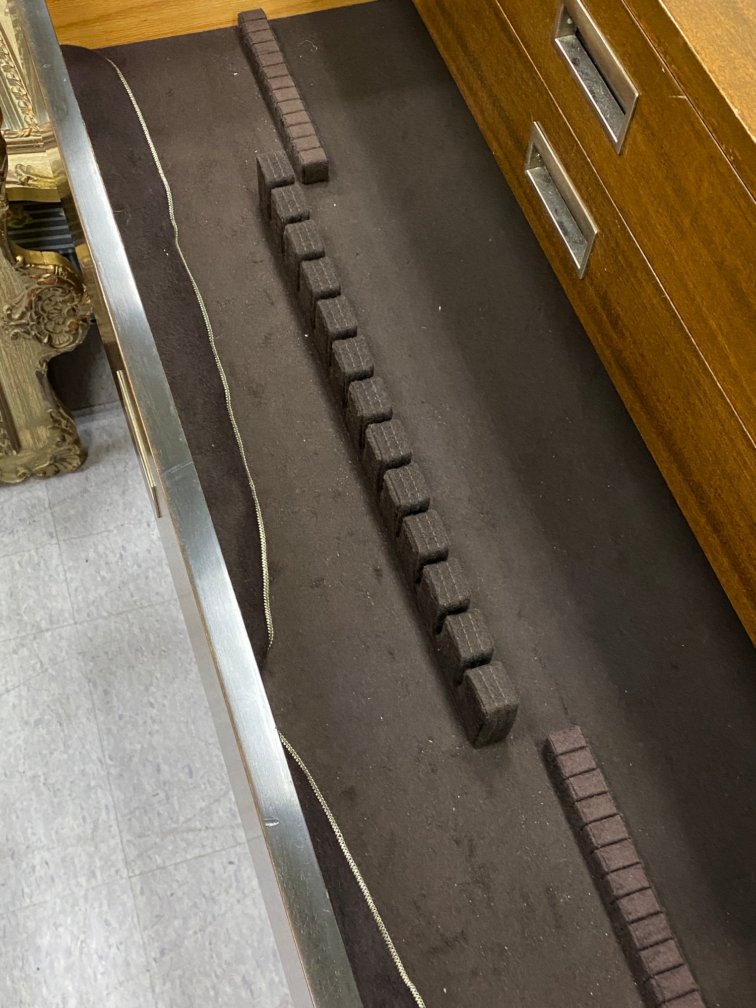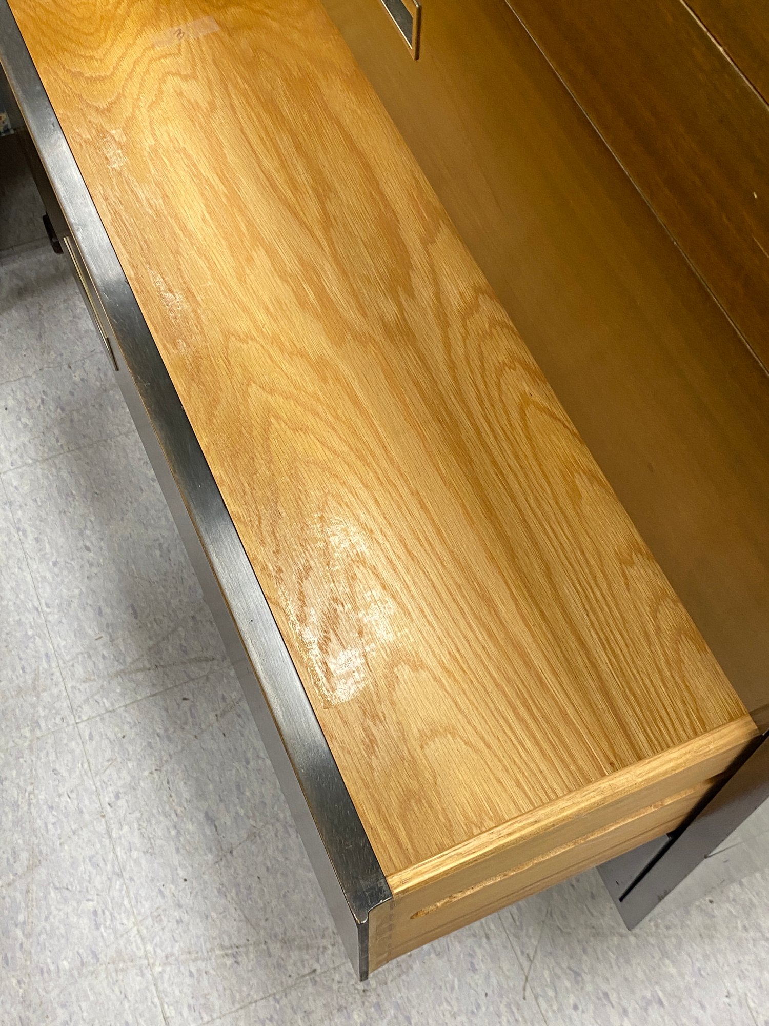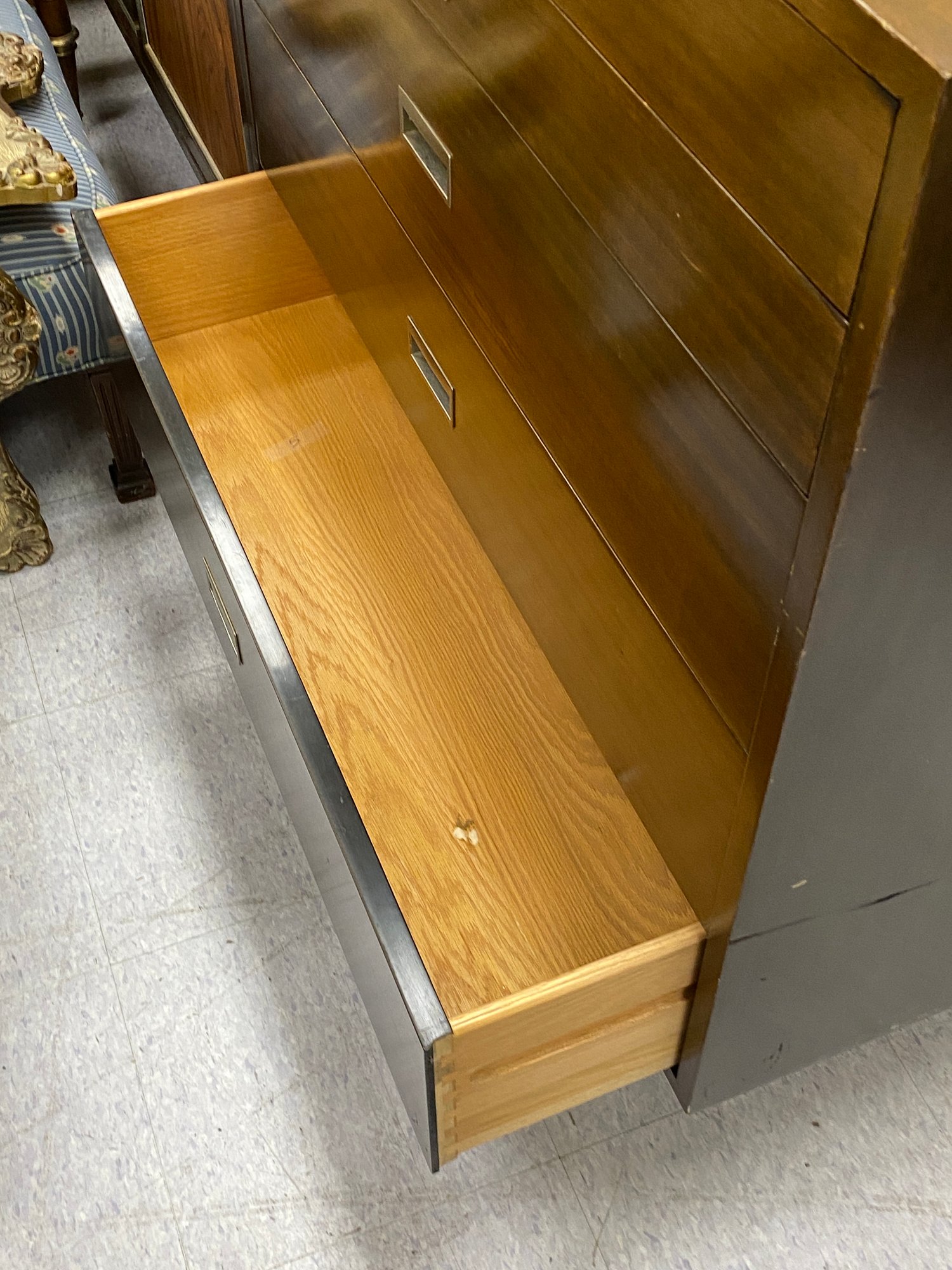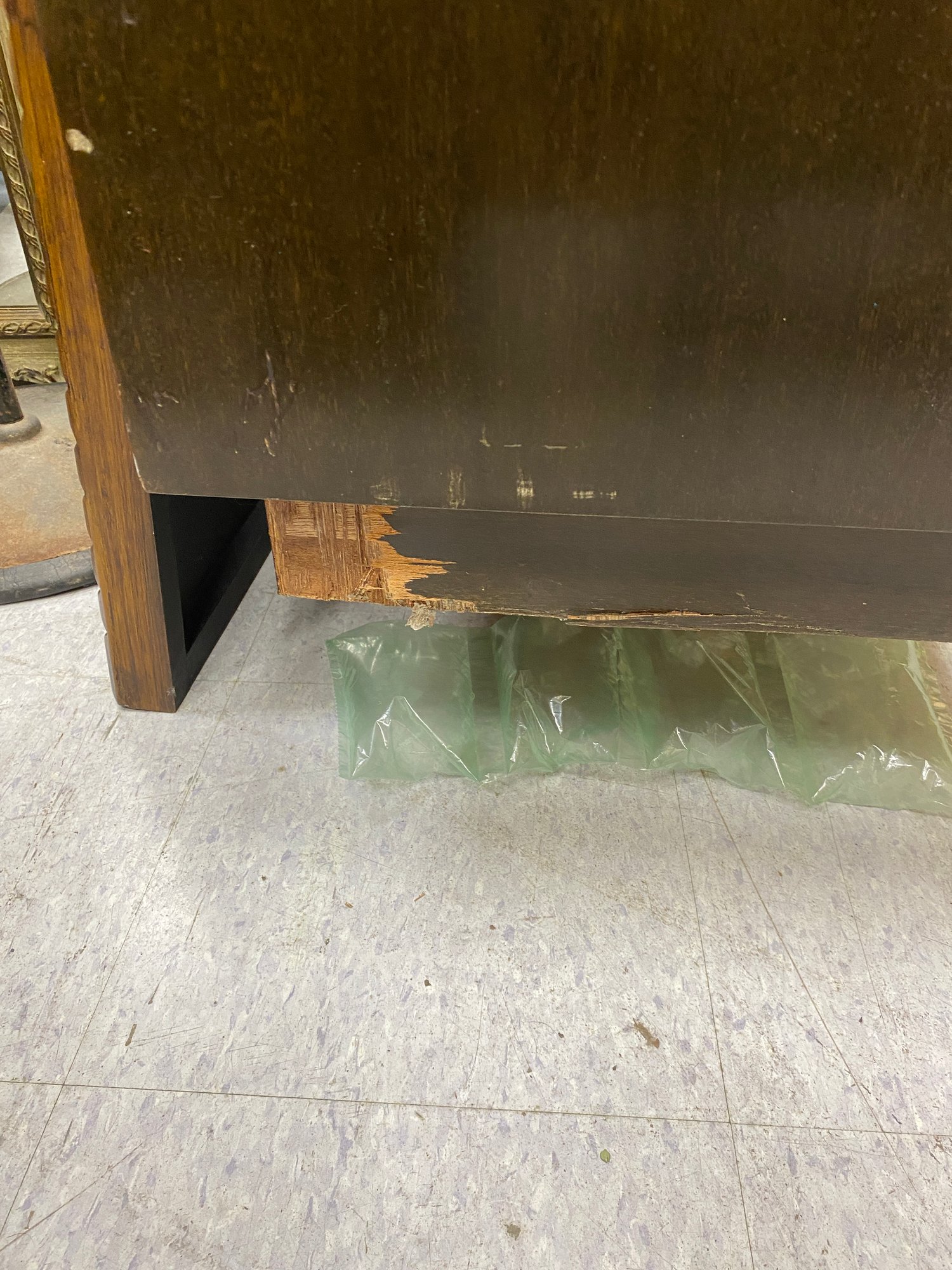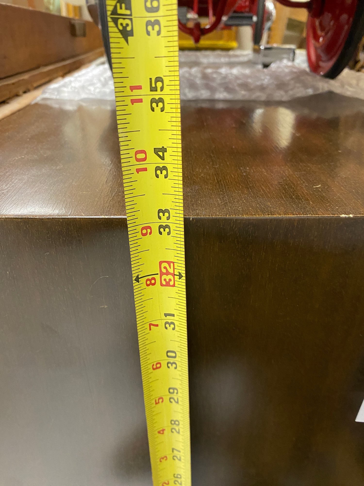 No shelves,,,some veneer loss to side of baseā¦. measurements added in photos