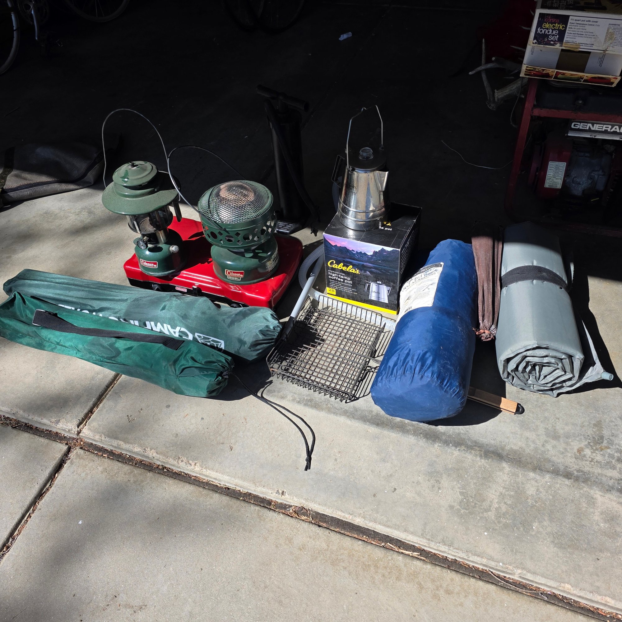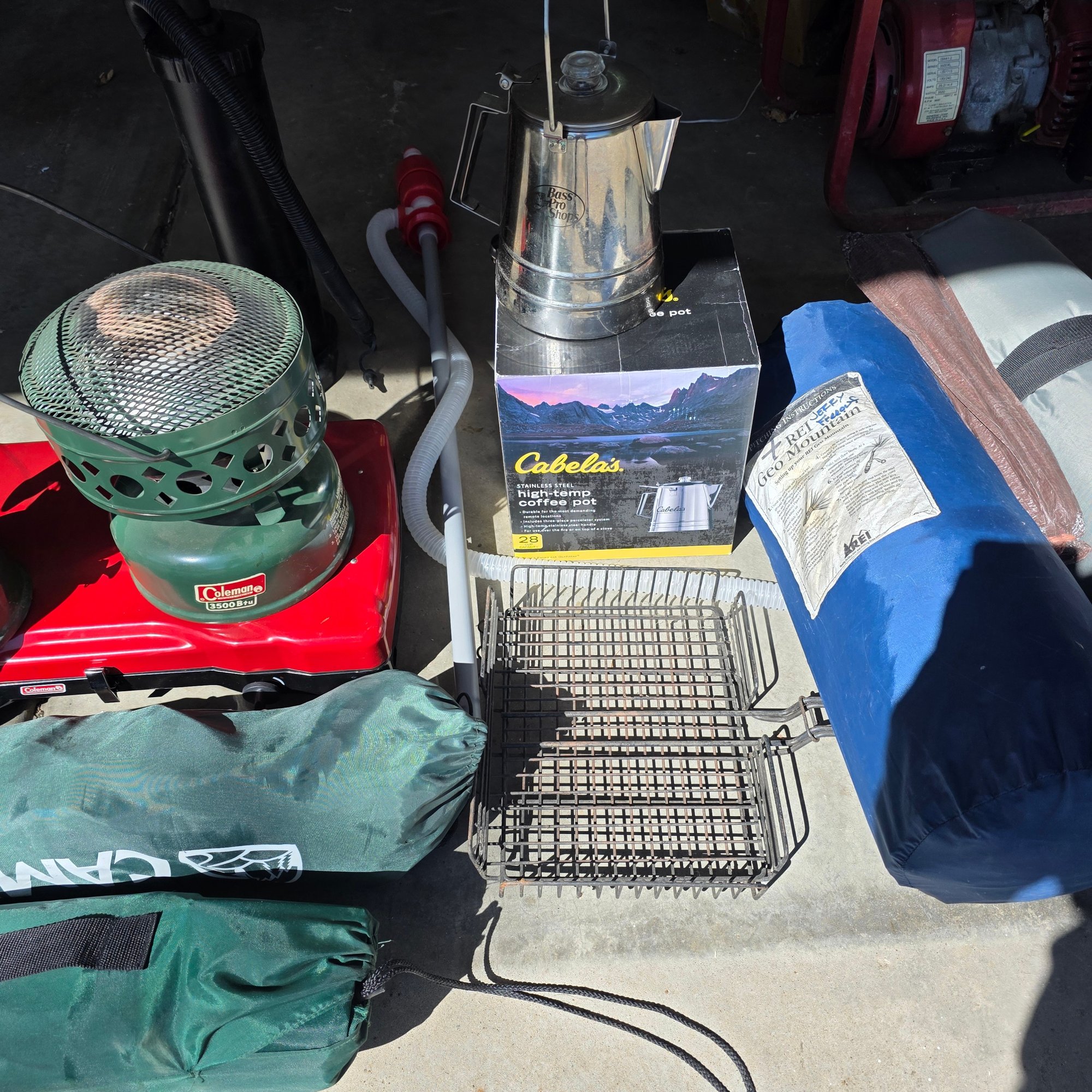 Camping Gear Lot - Tent- Chairs - Pad-colman Stove - Heater - Lantern - Coffee Pot
