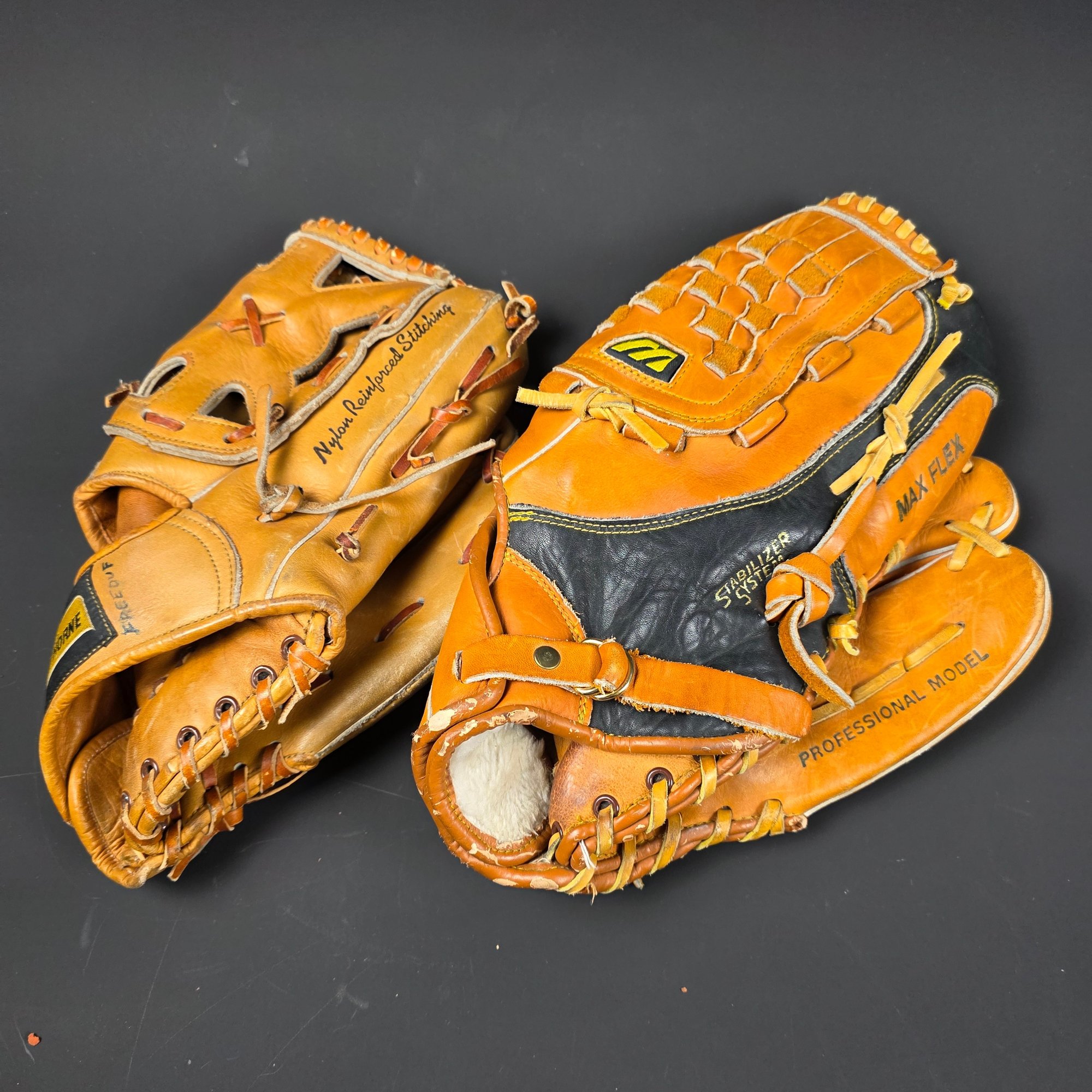 Two Baseball Gloves - Mizuno Max Flex MZ3600 - Wards Hawthorne Free-Duf