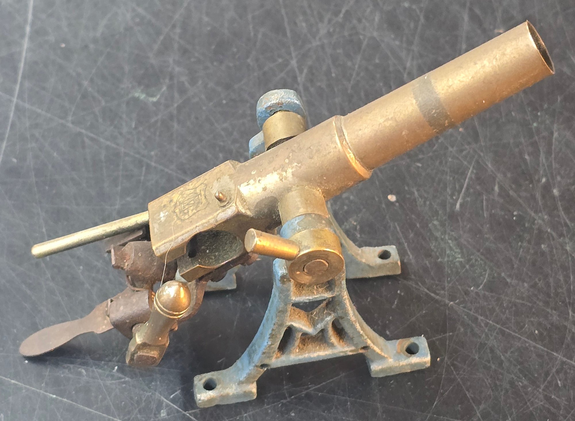 antique brass and cast iron scale model replica Gatling gun , late 19th century replica