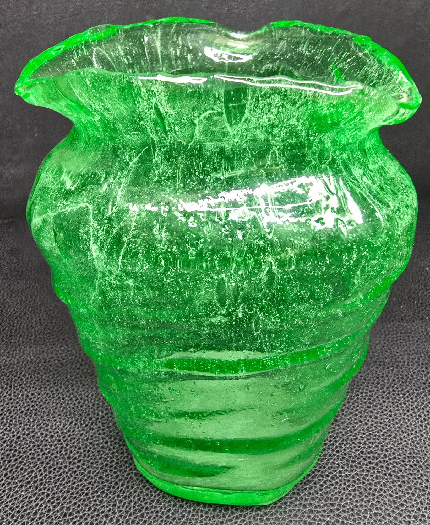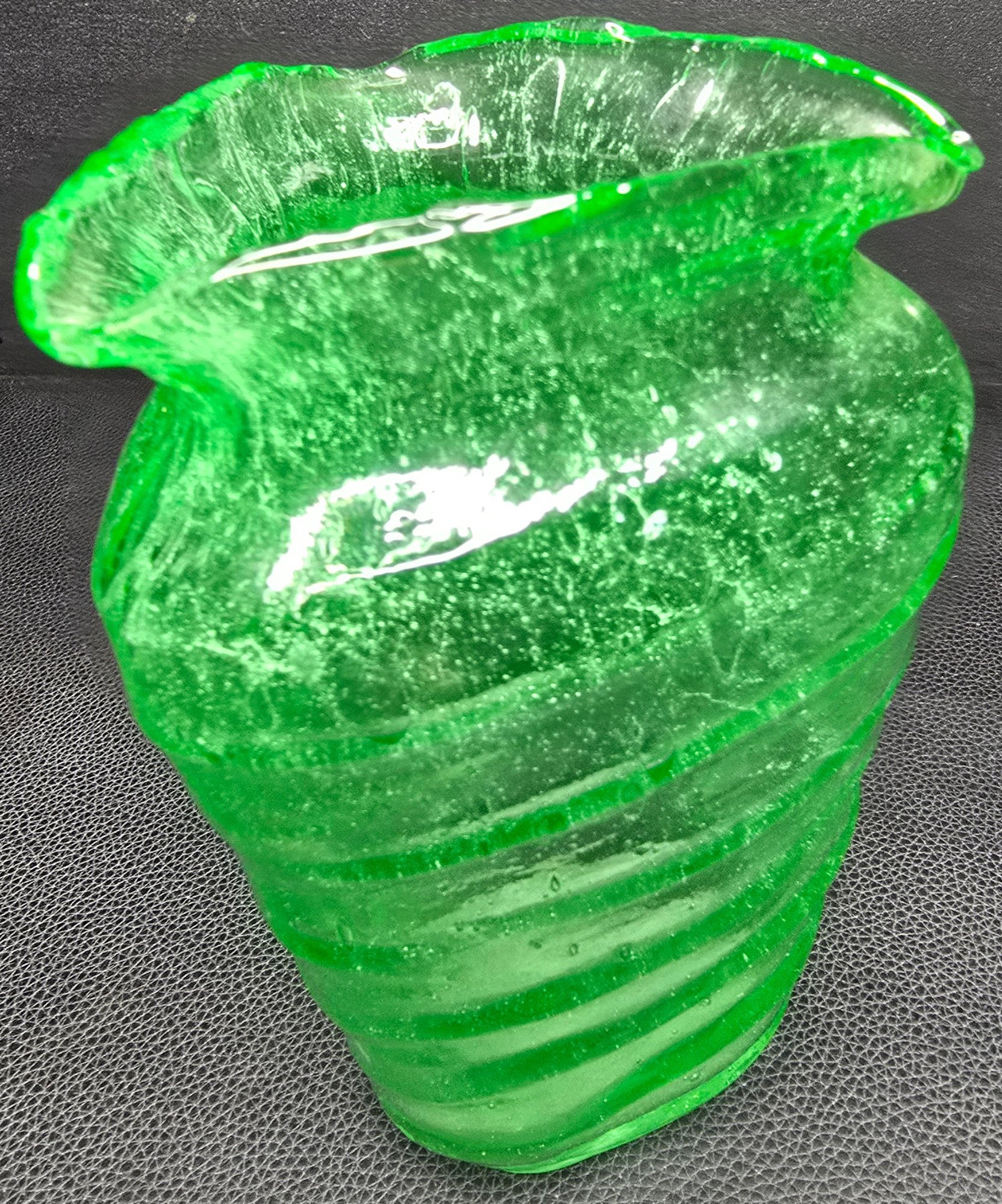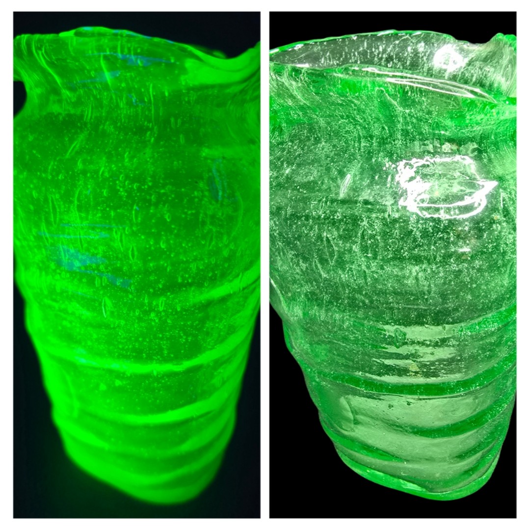 consolidated glass co. catalonIan line uranium glass triangular vase
