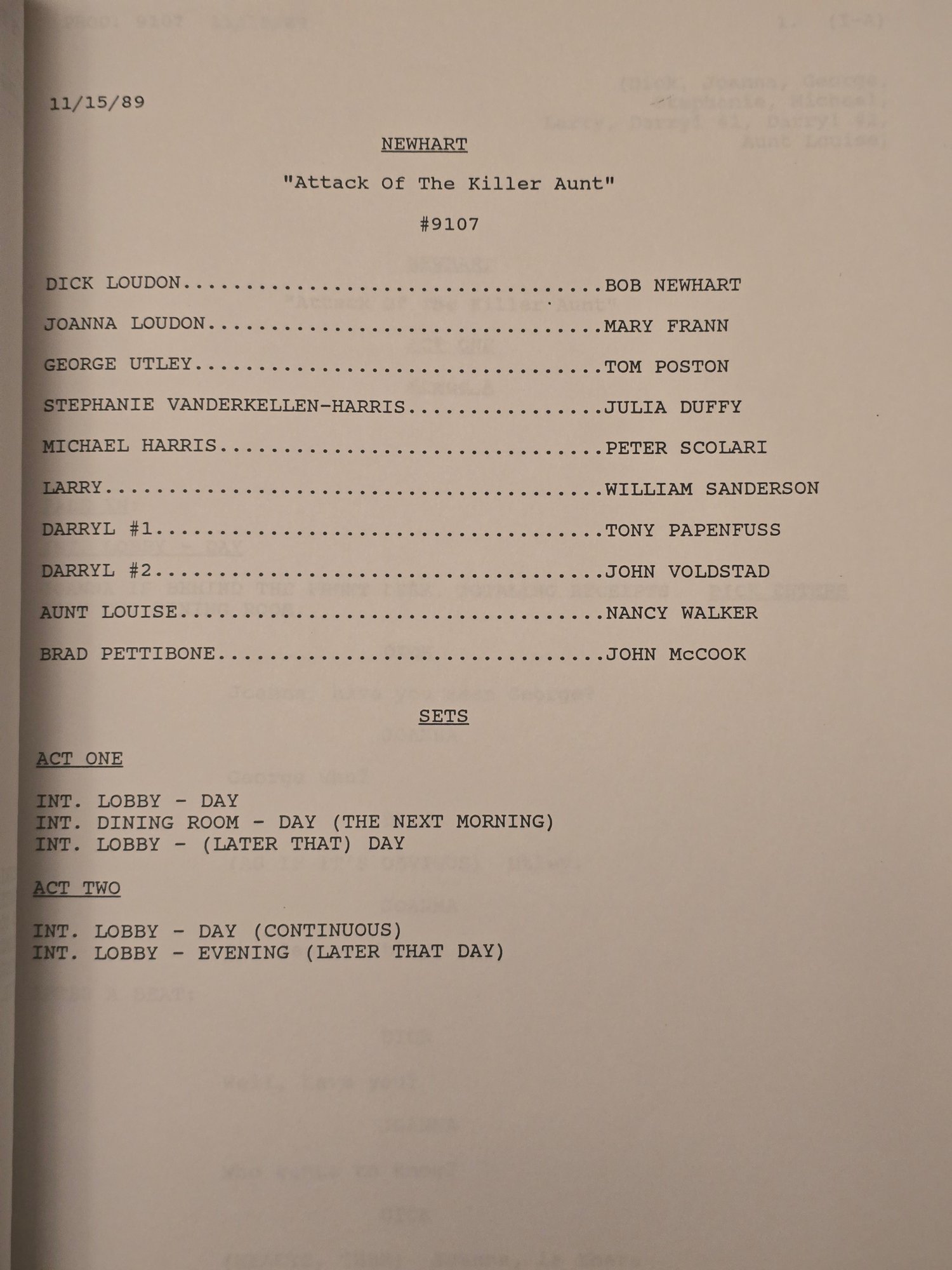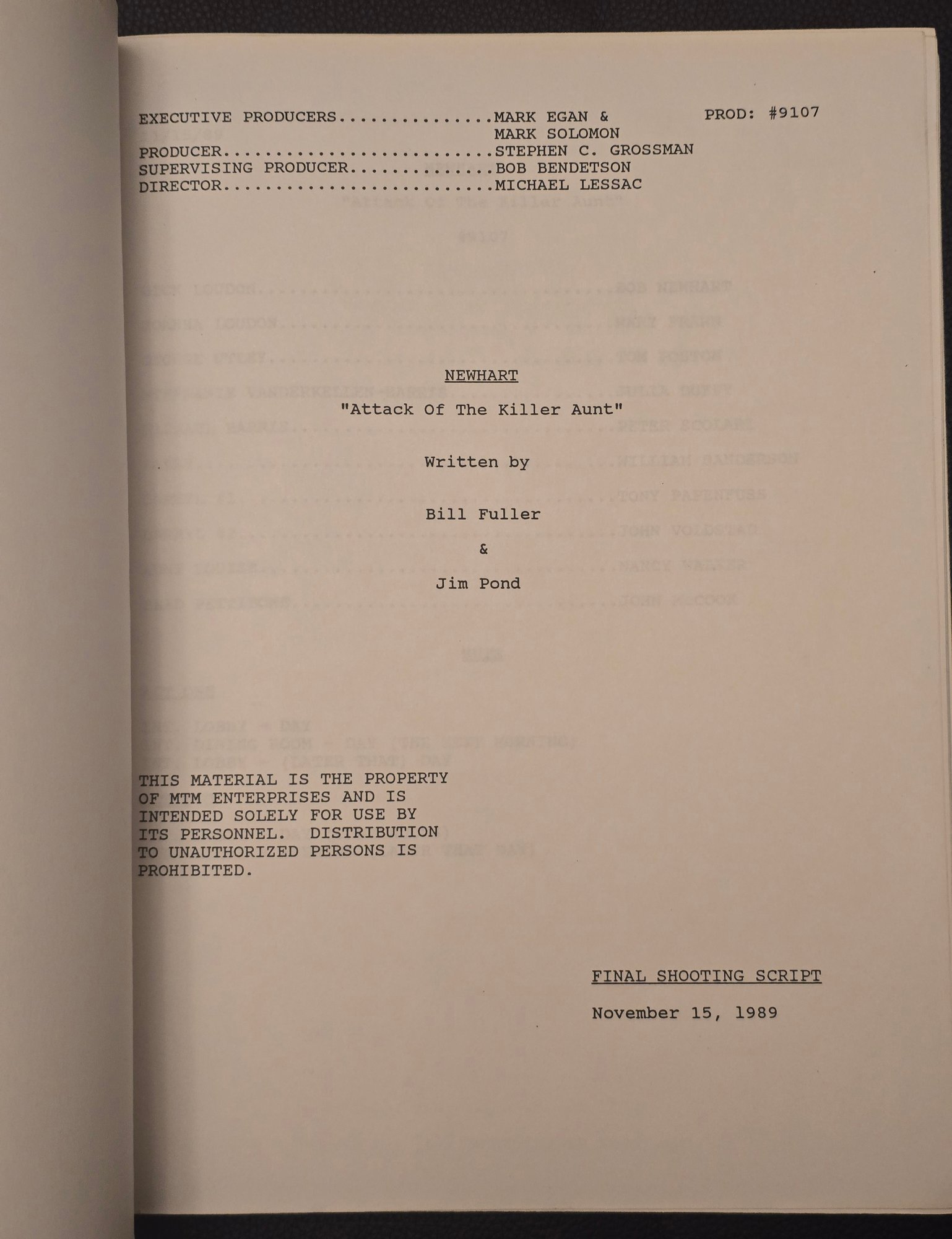 Newhart " Attack Of The Killer Aunt" Autographed Script, Bob Newhart
