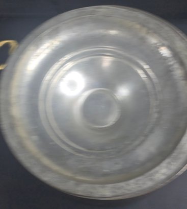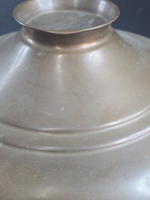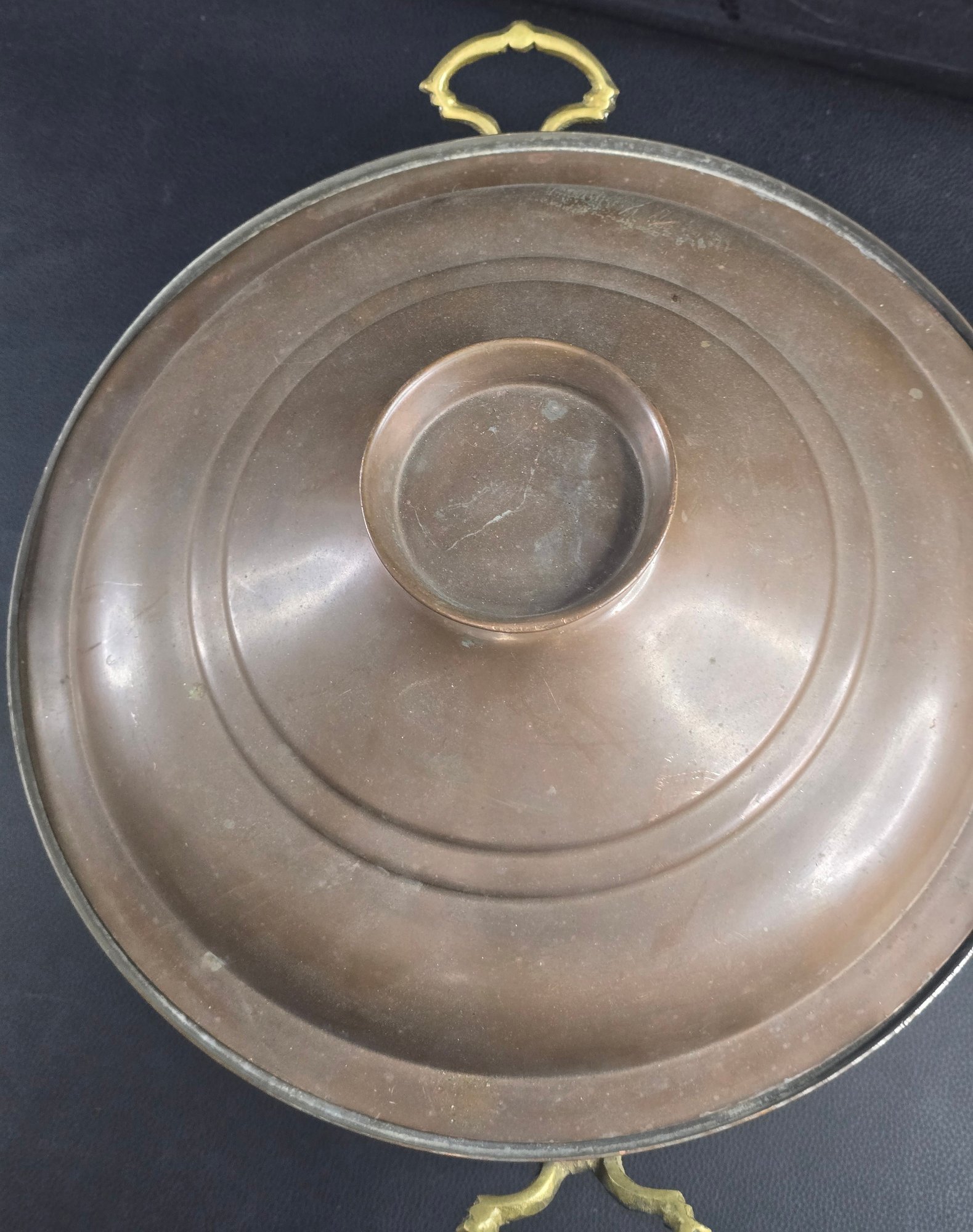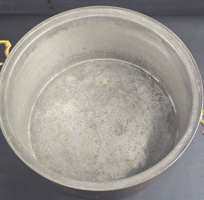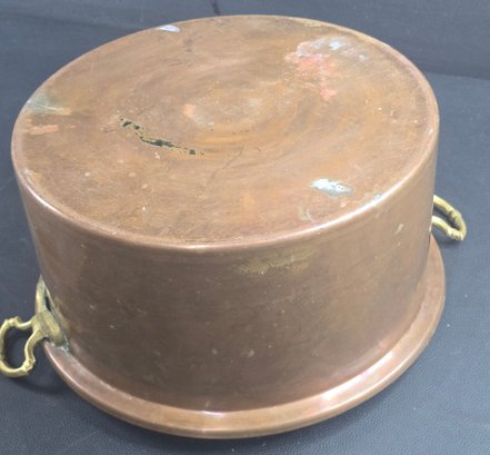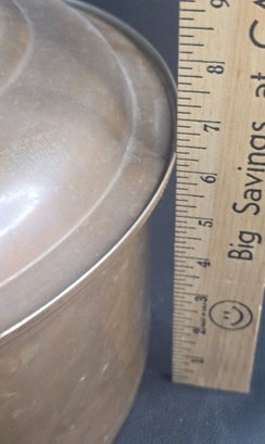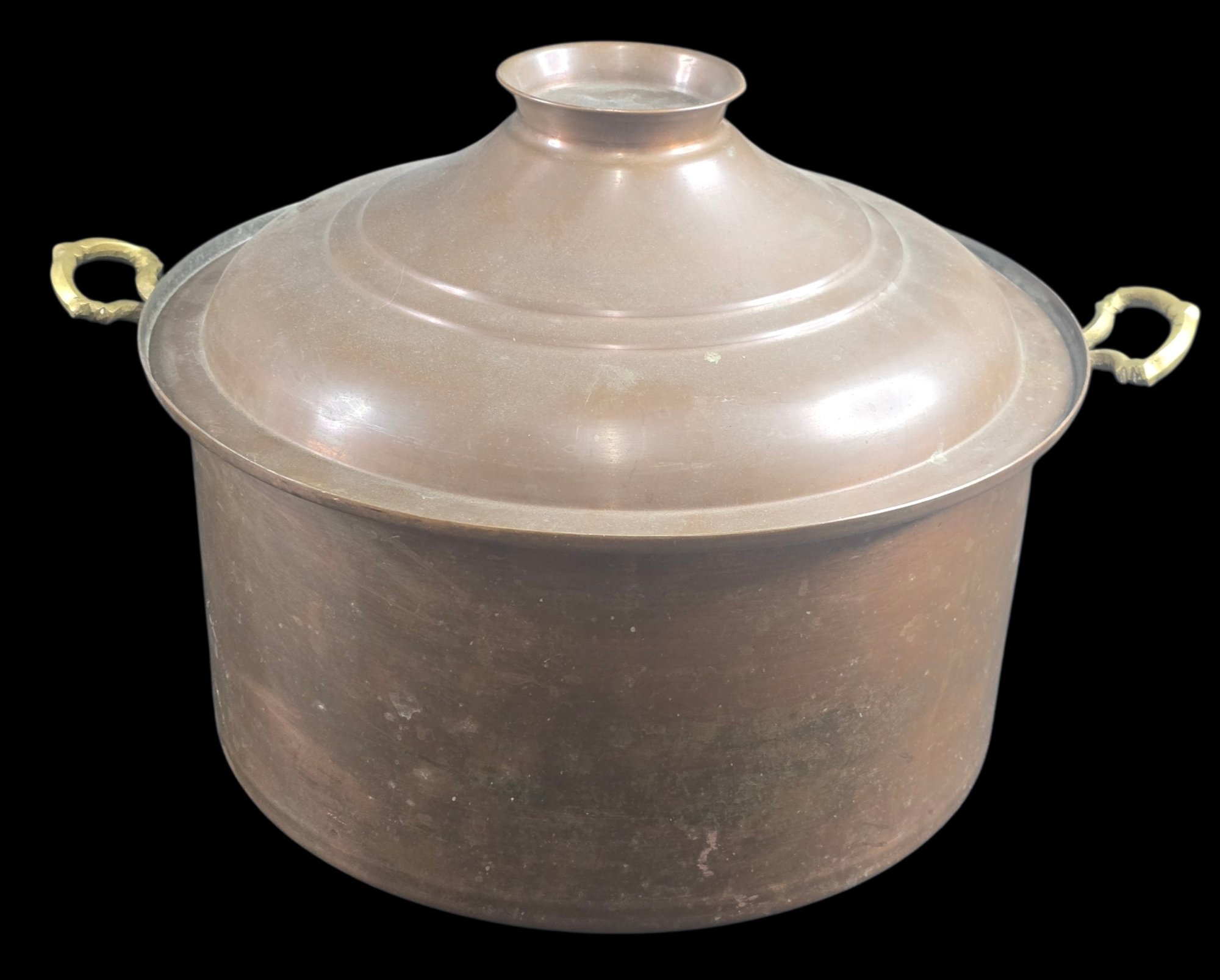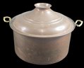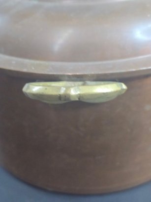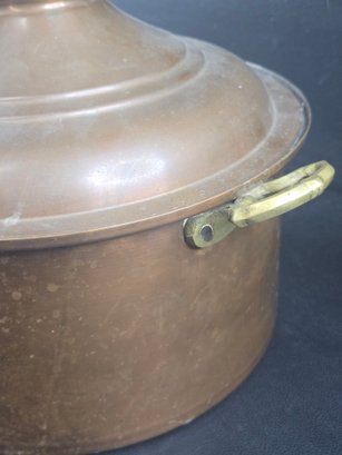 Large Lidded Antique Copper Pot With Brass Ring Handles