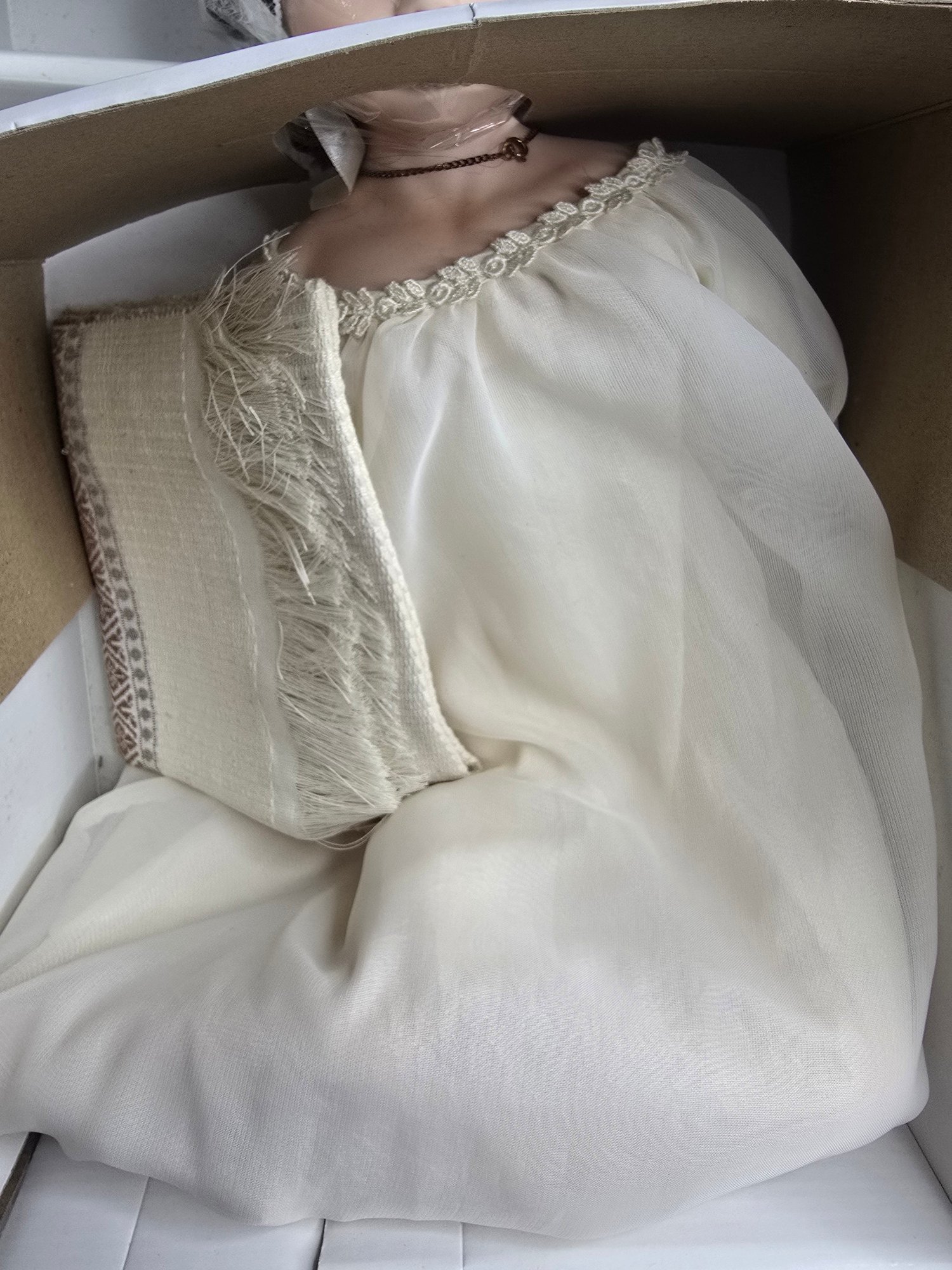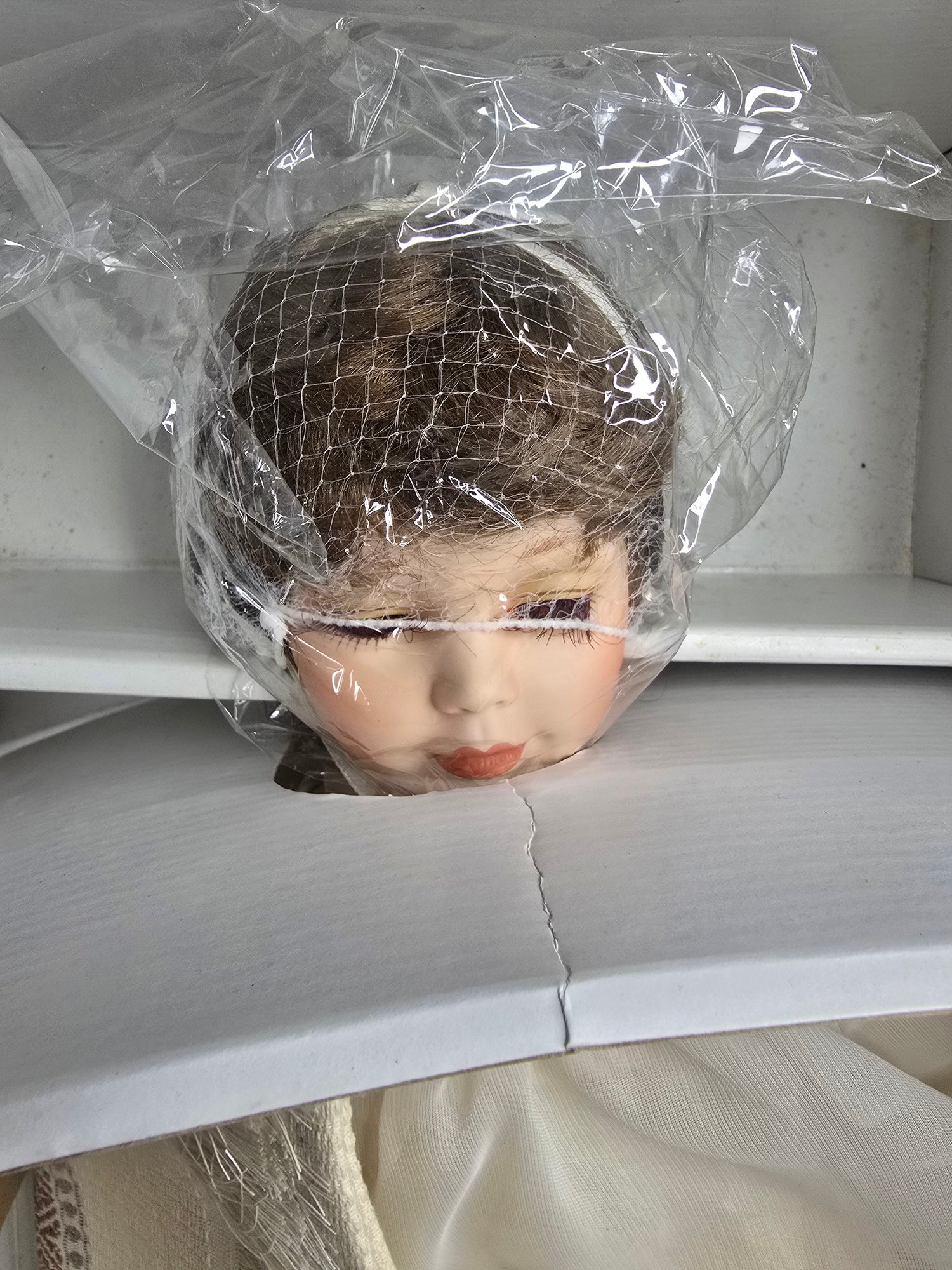 Vintage porcelain 18" doll with packaging.
