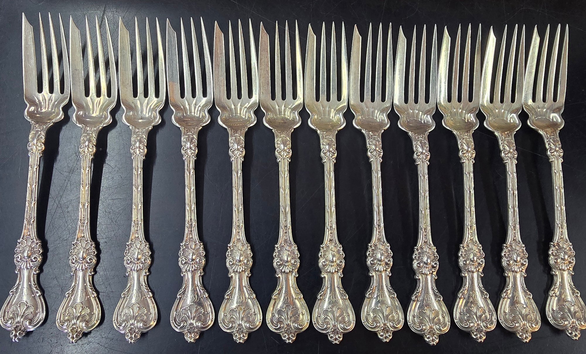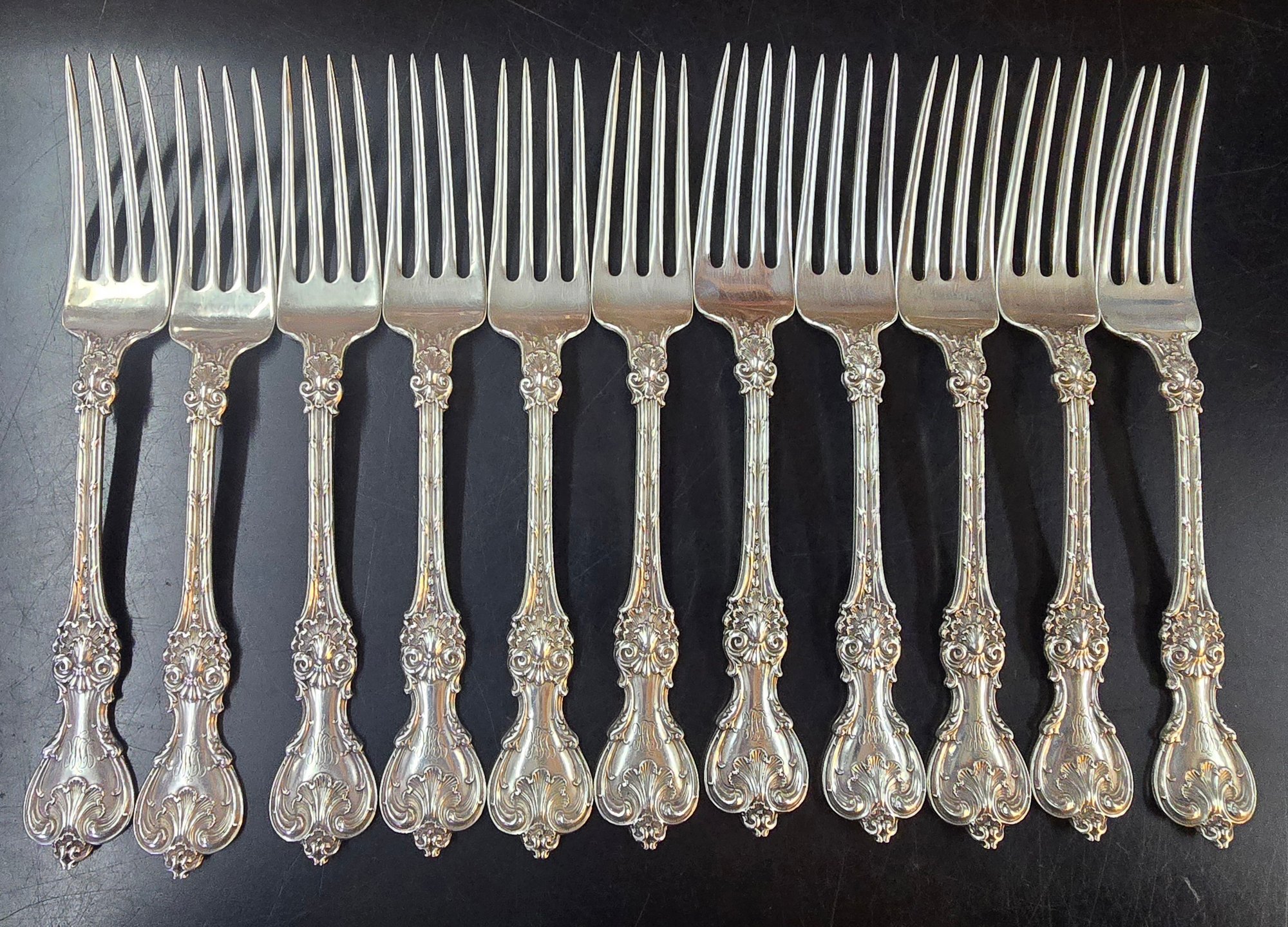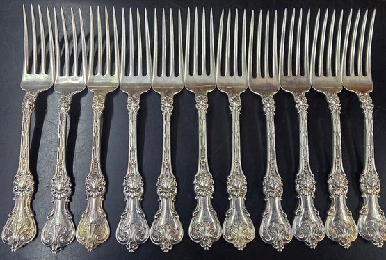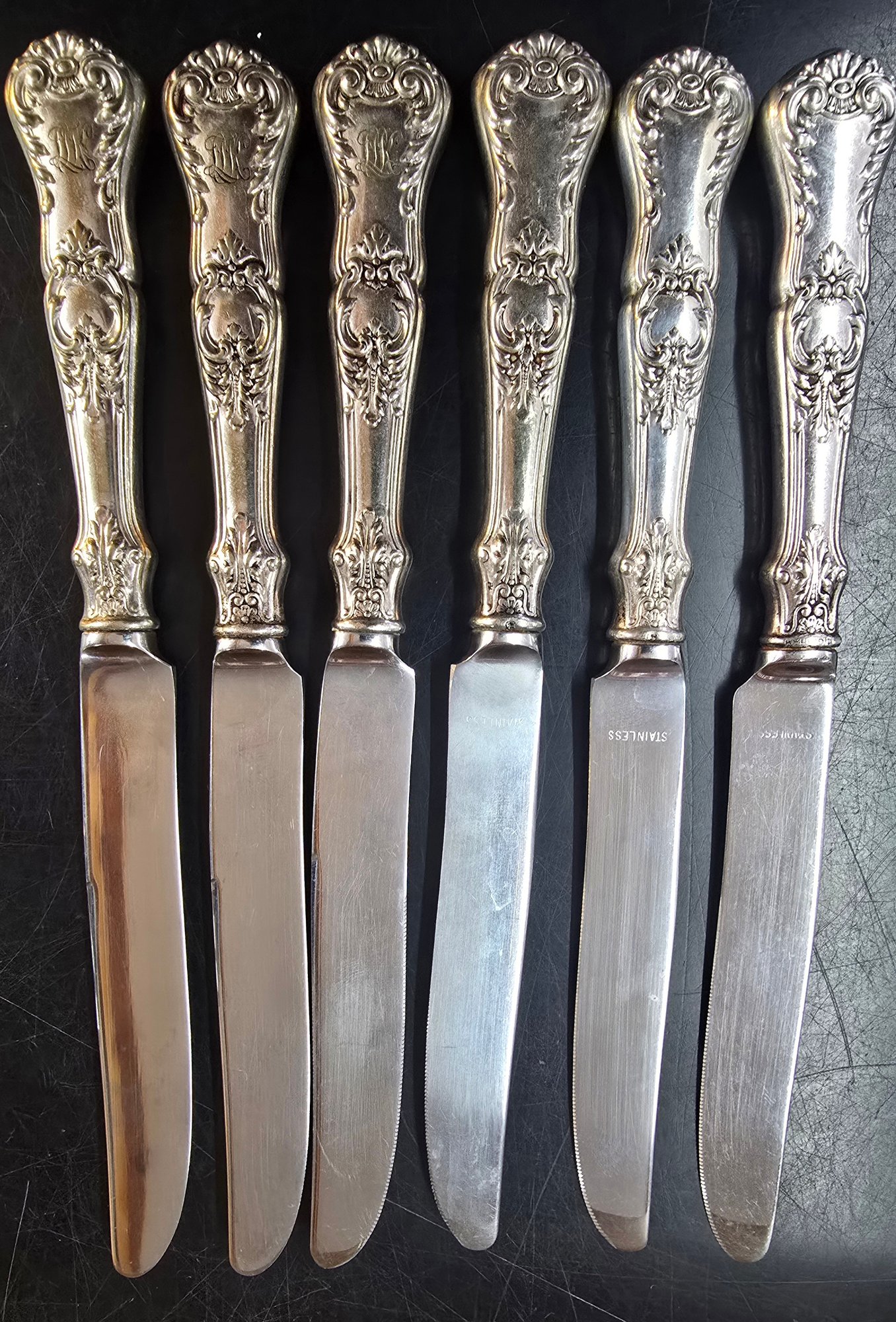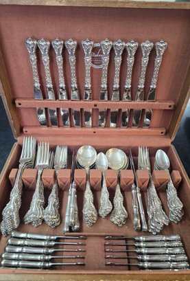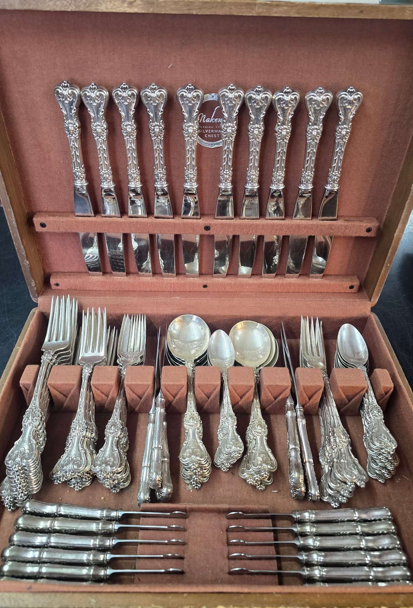 Sterling Silver Service Set, 93.59 Troy ounces, *** Weight breakdown solid flatware 81.59 Troy ounces , knives (48.02 oz. X .25) =12.00 oz for combined total weight of 93.59 troy ounces***