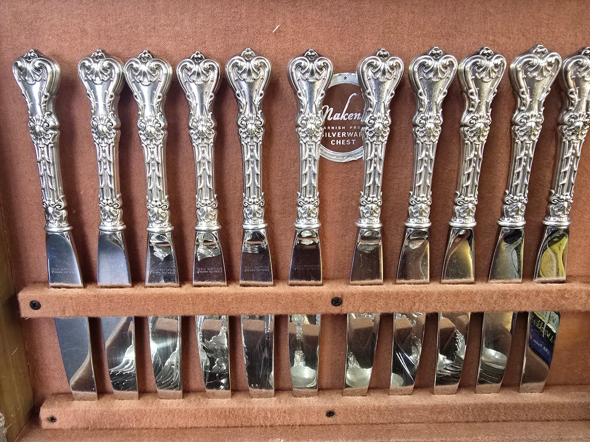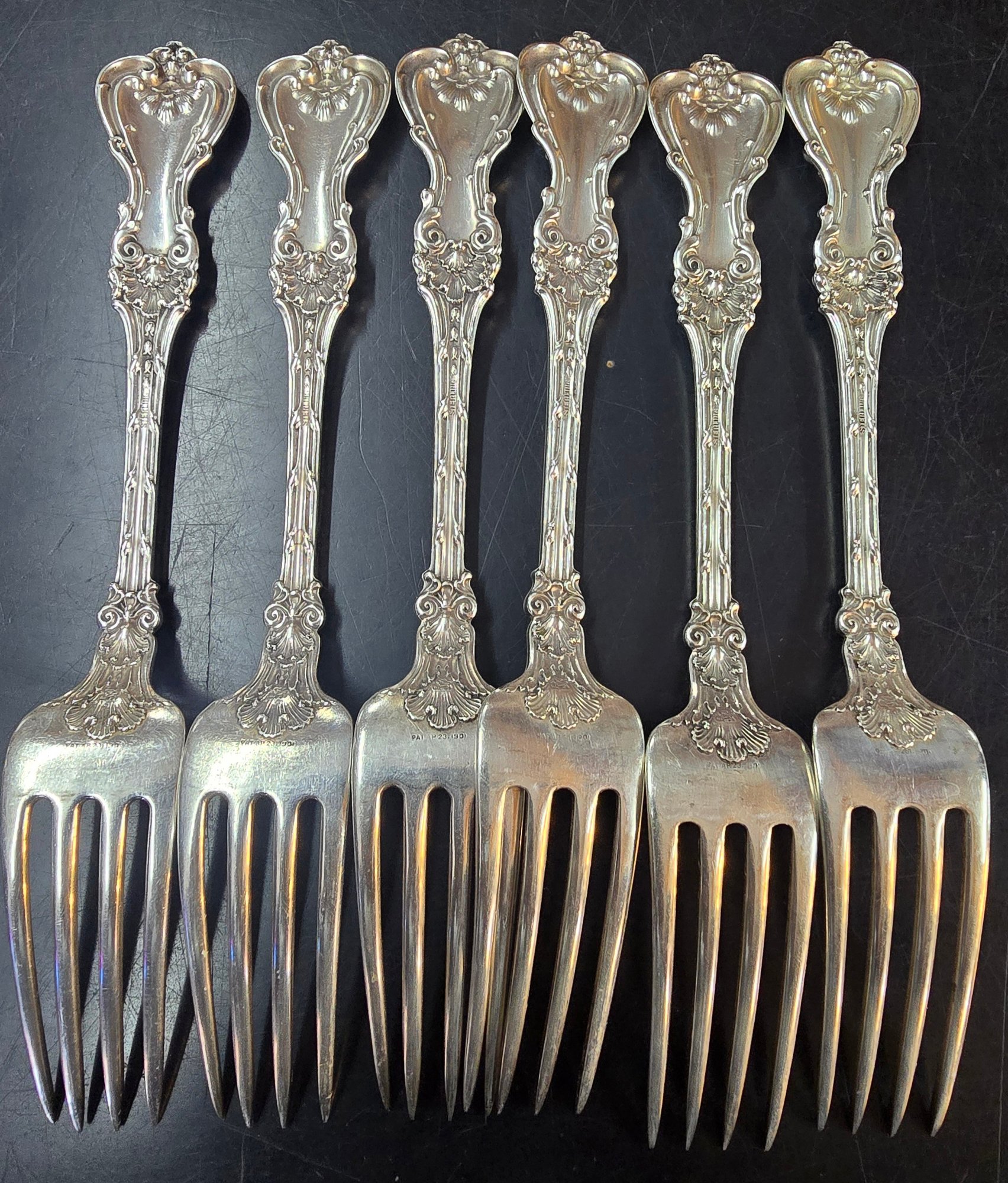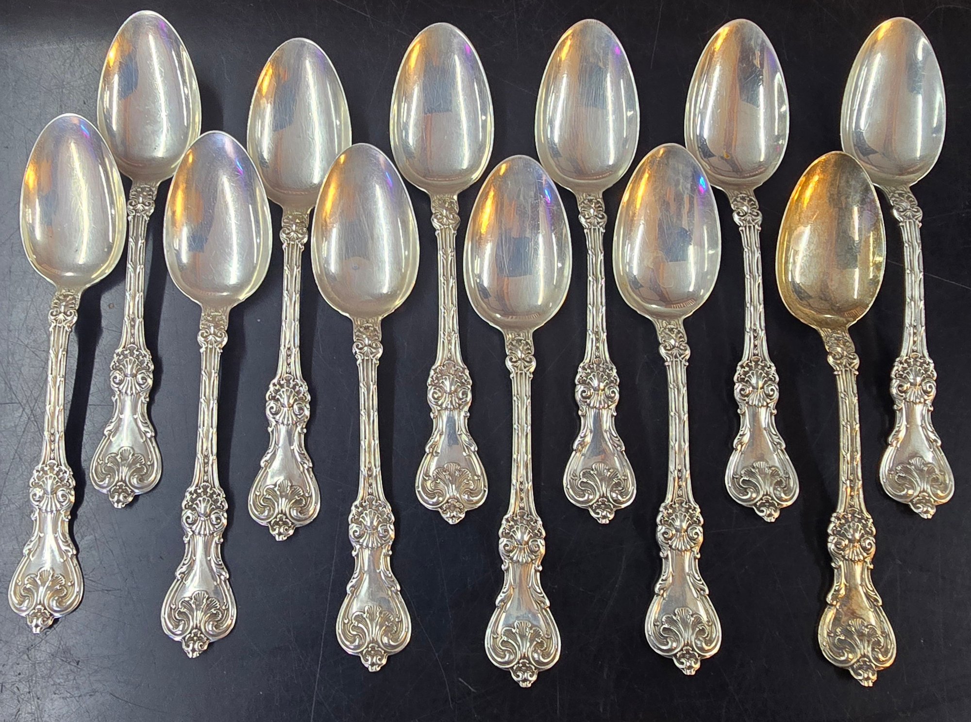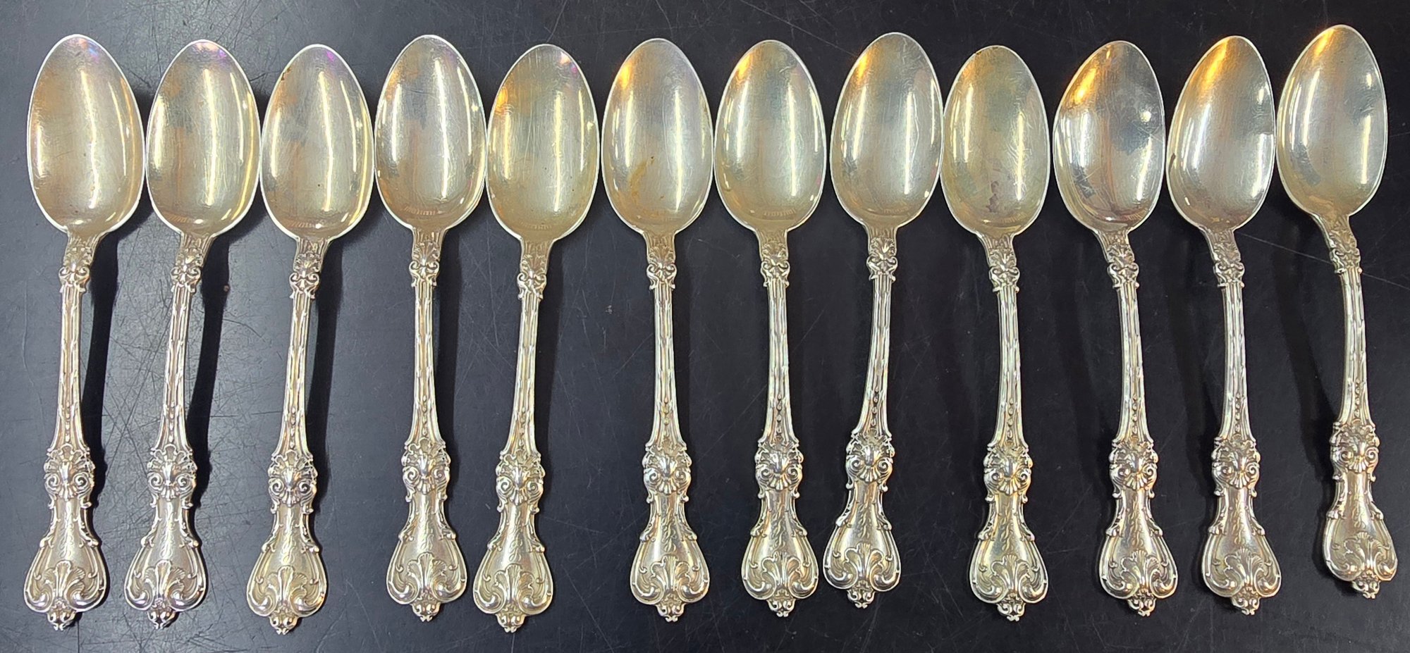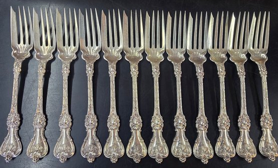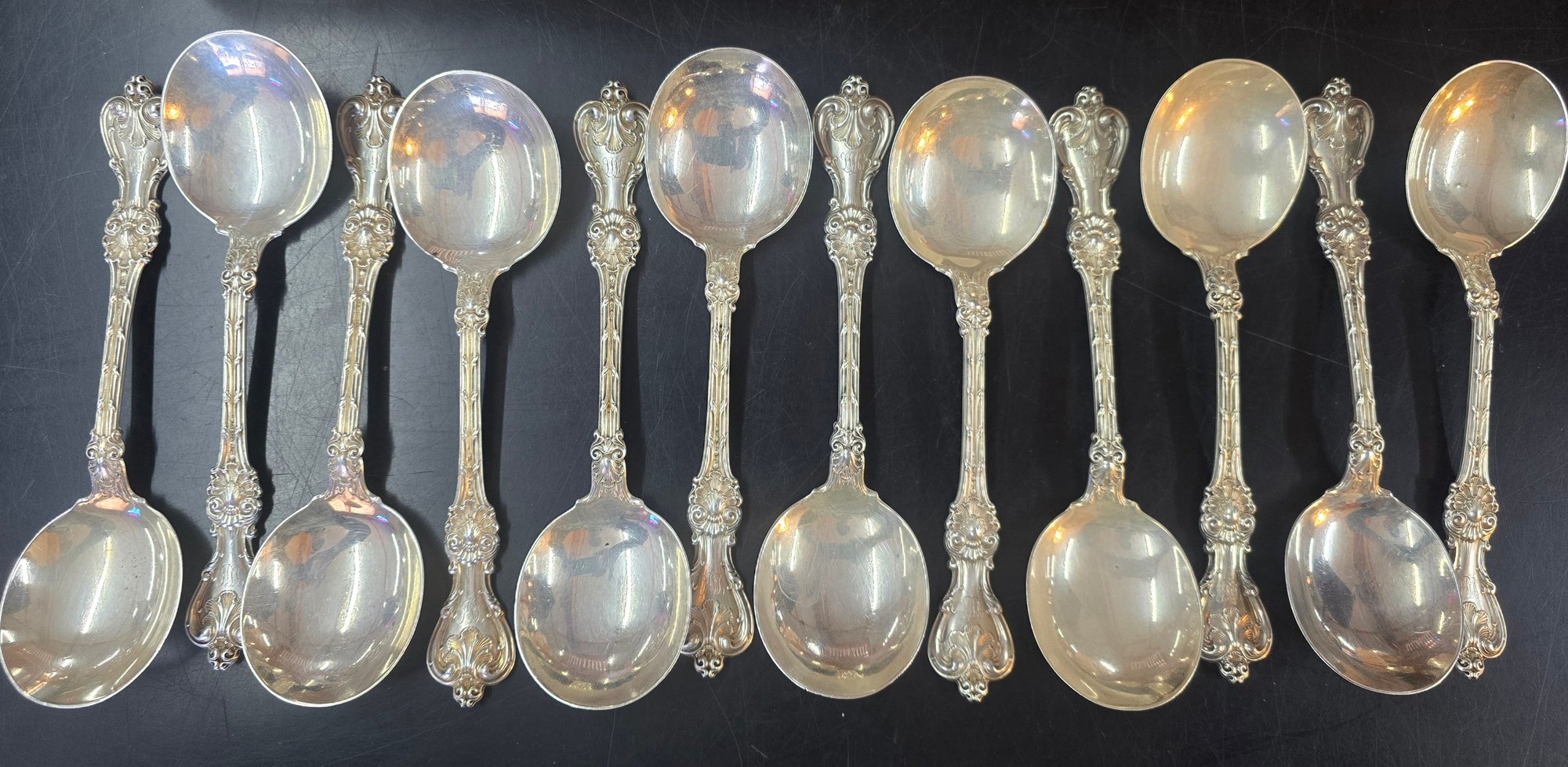 Sterling Silver Service Set, 93.59 Troy ounces, *** Weight breakdown solid flatware 81.59 Troy ounces , knives (48.02 oz. X .25) =12.00 oz for combined total weight of 93.59 troy ounces***