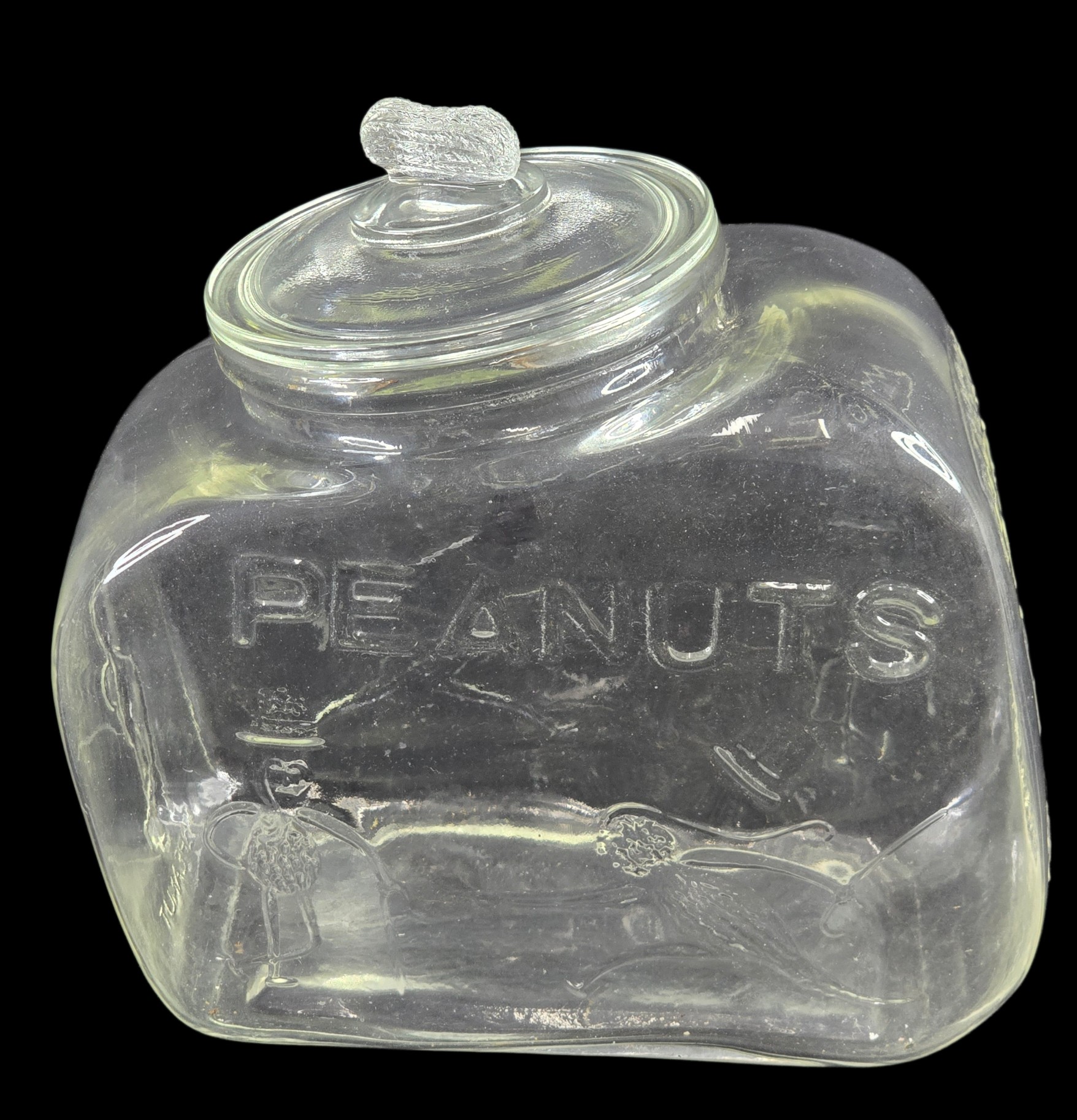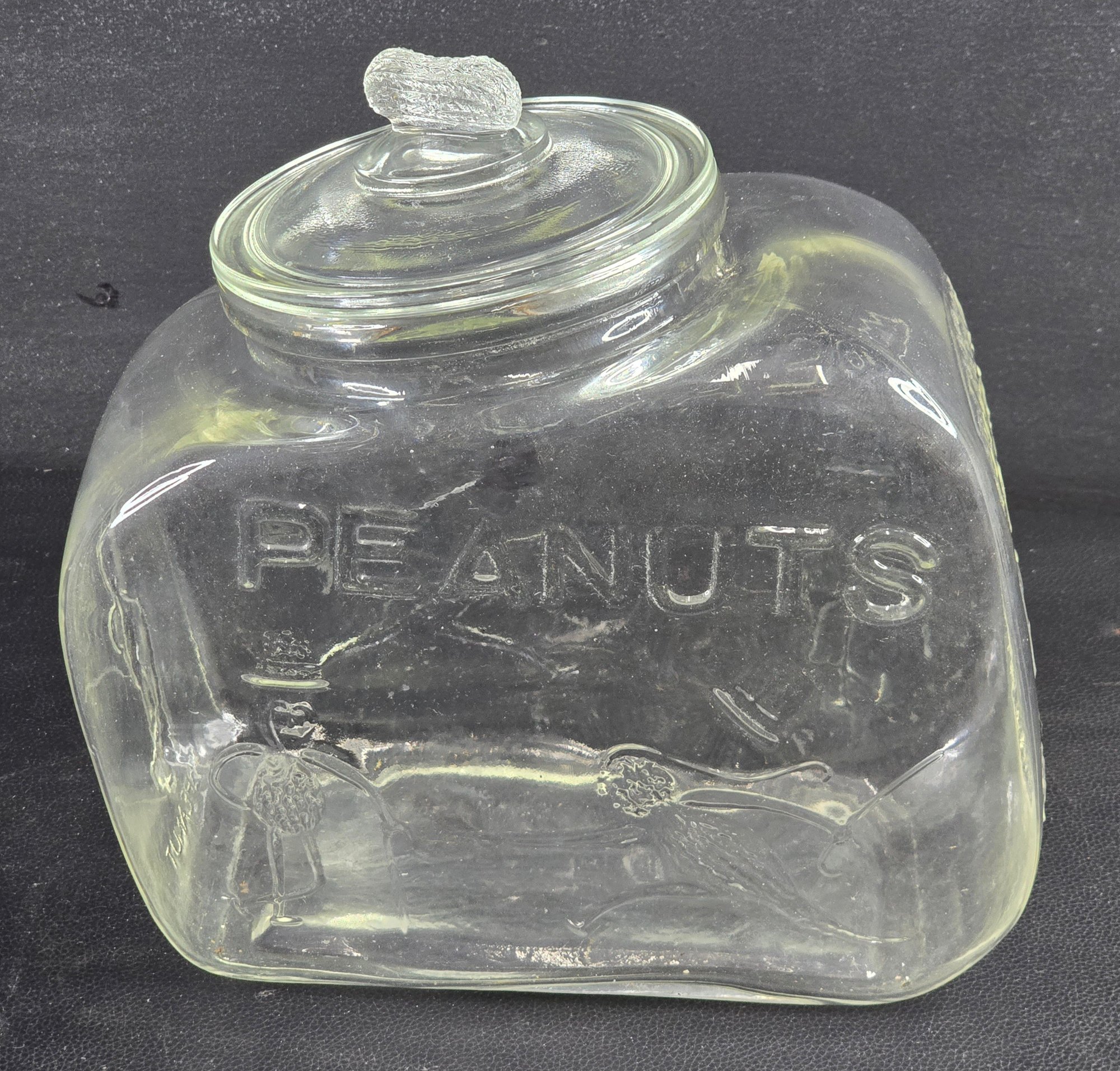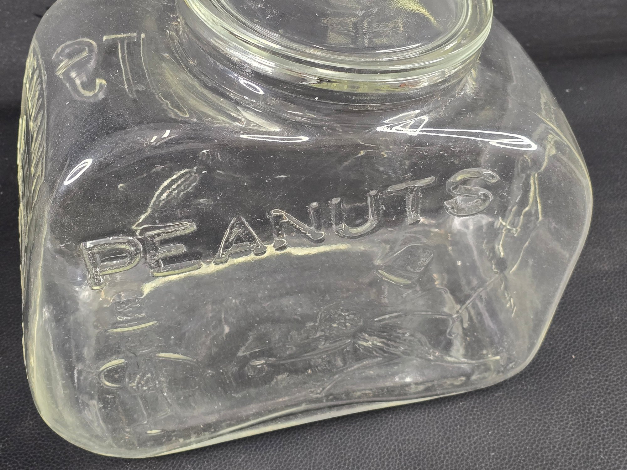 Vintage Glass Planters Peanuts embossed Display Canister, circa 1920'-30's