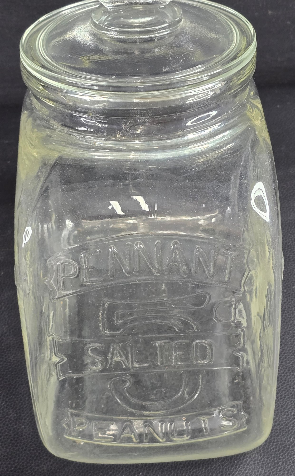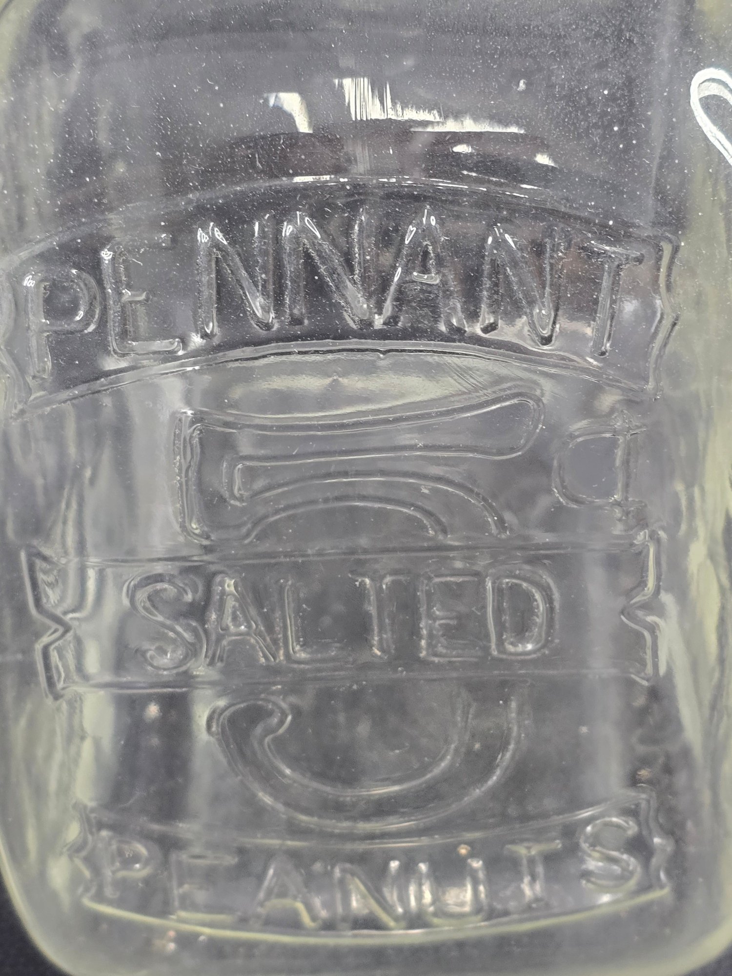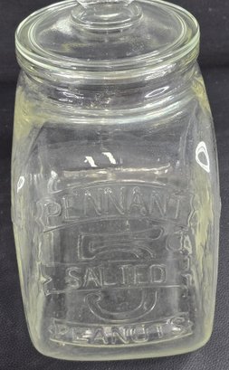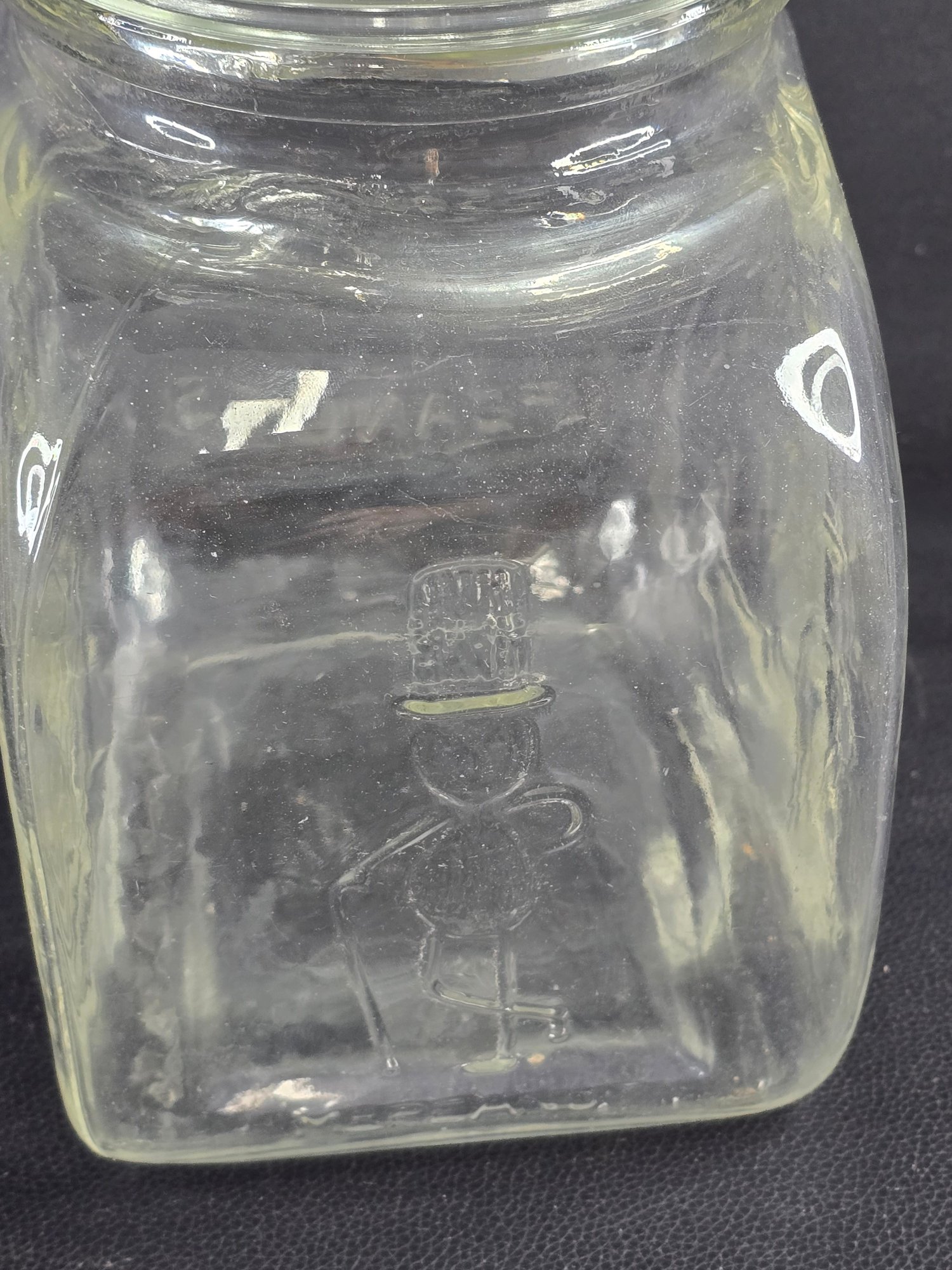 Vintage Glass Planters Peanuts embossed Display Canister, circa 1920'-30's