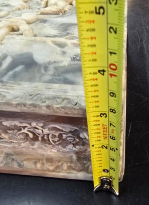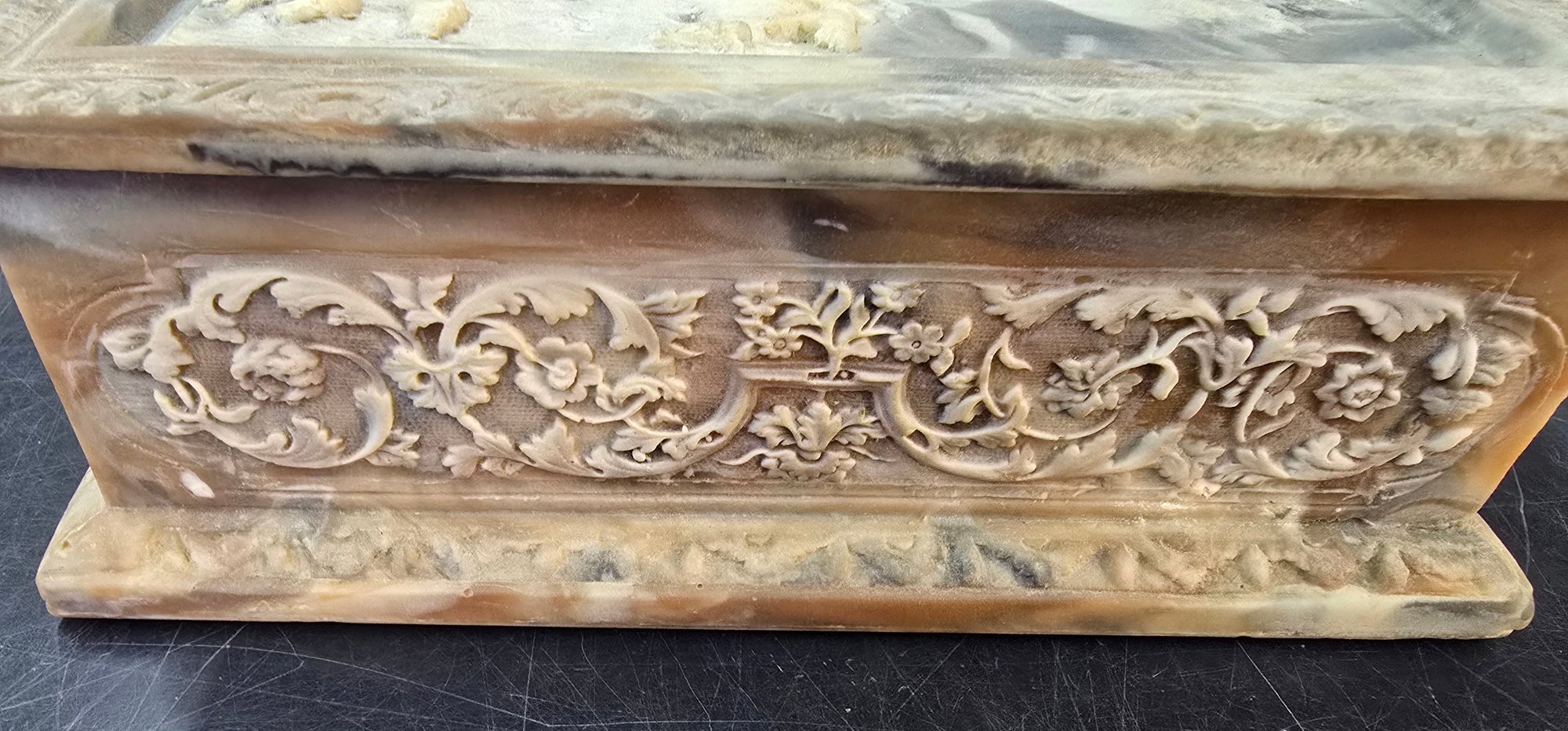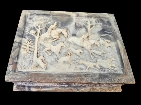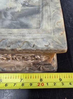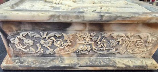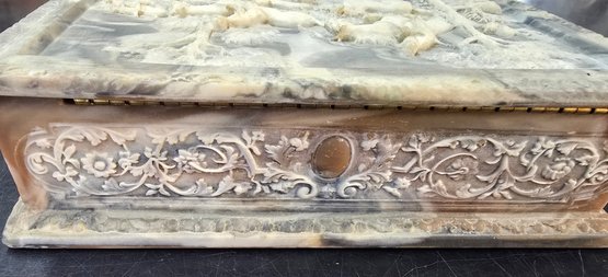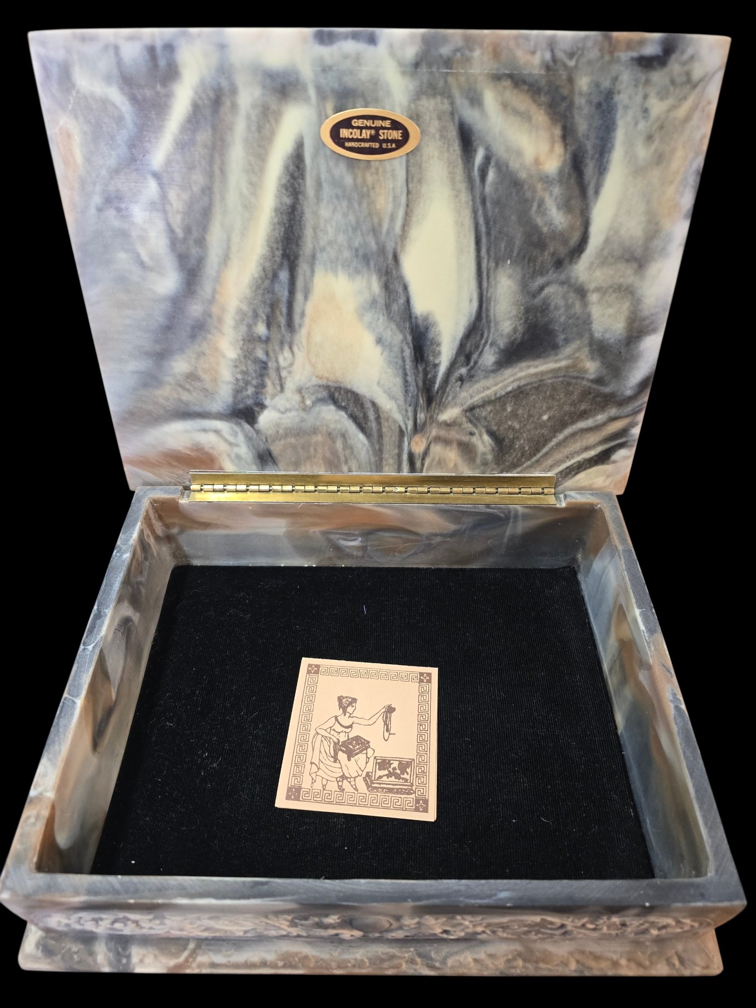 Vintage Stone Carved Covered Jewelry Box, Incolay