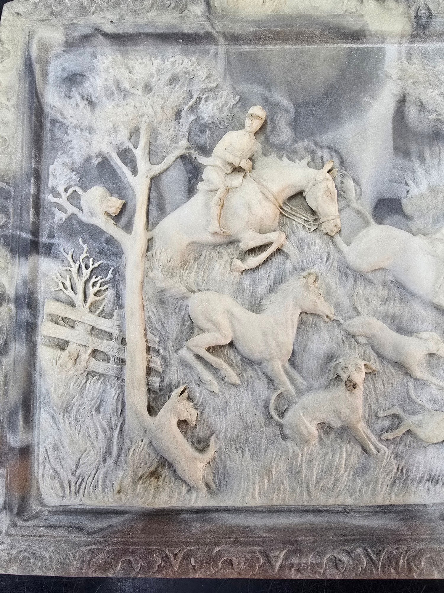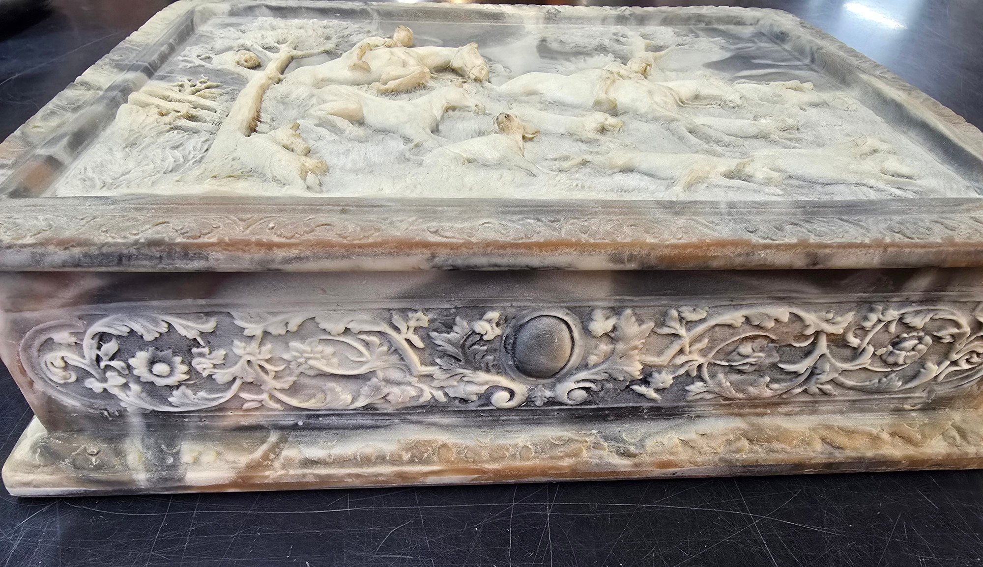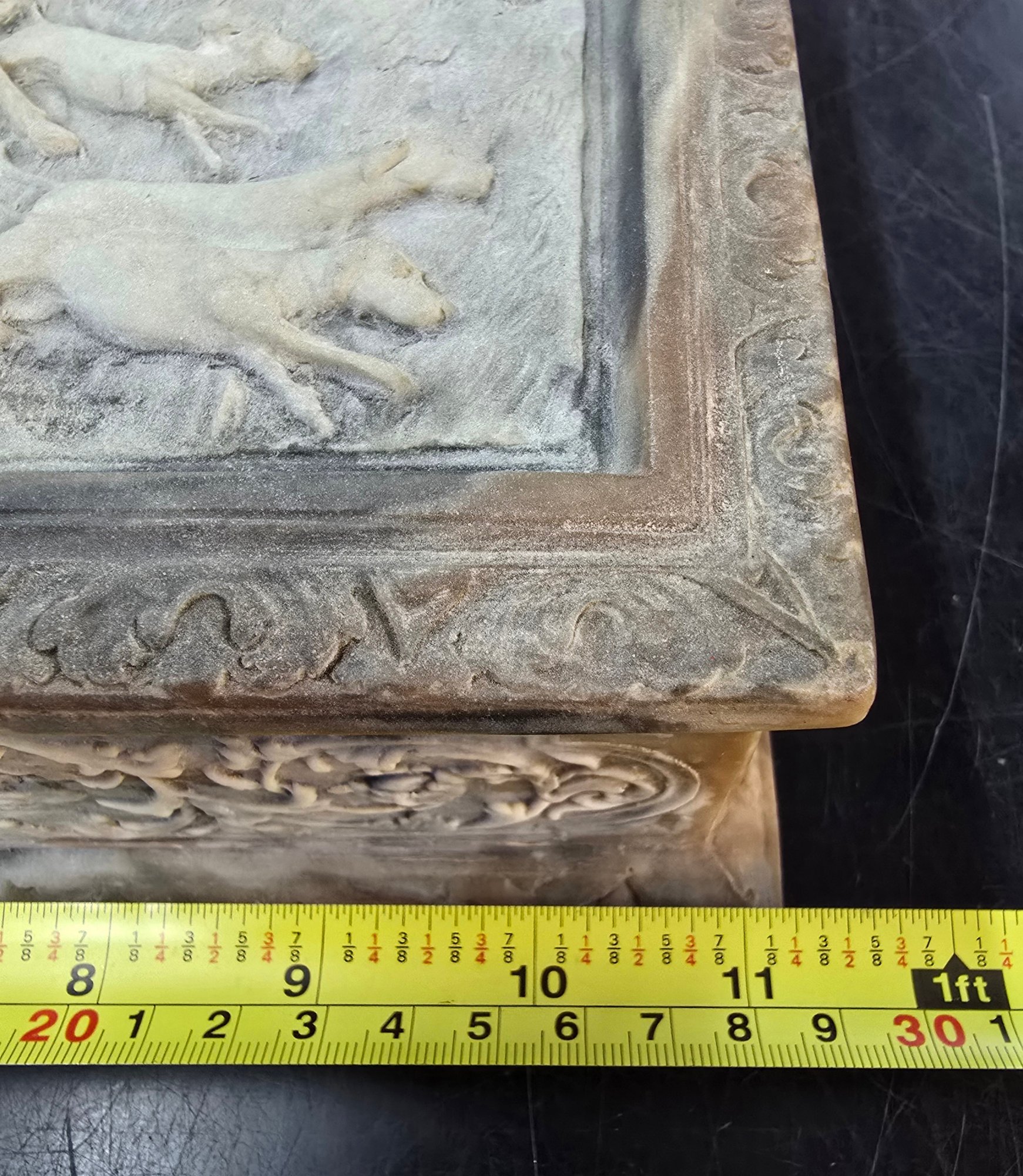 Vintage Stone Carved Covered Jewelry Box, Incolay