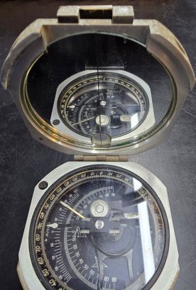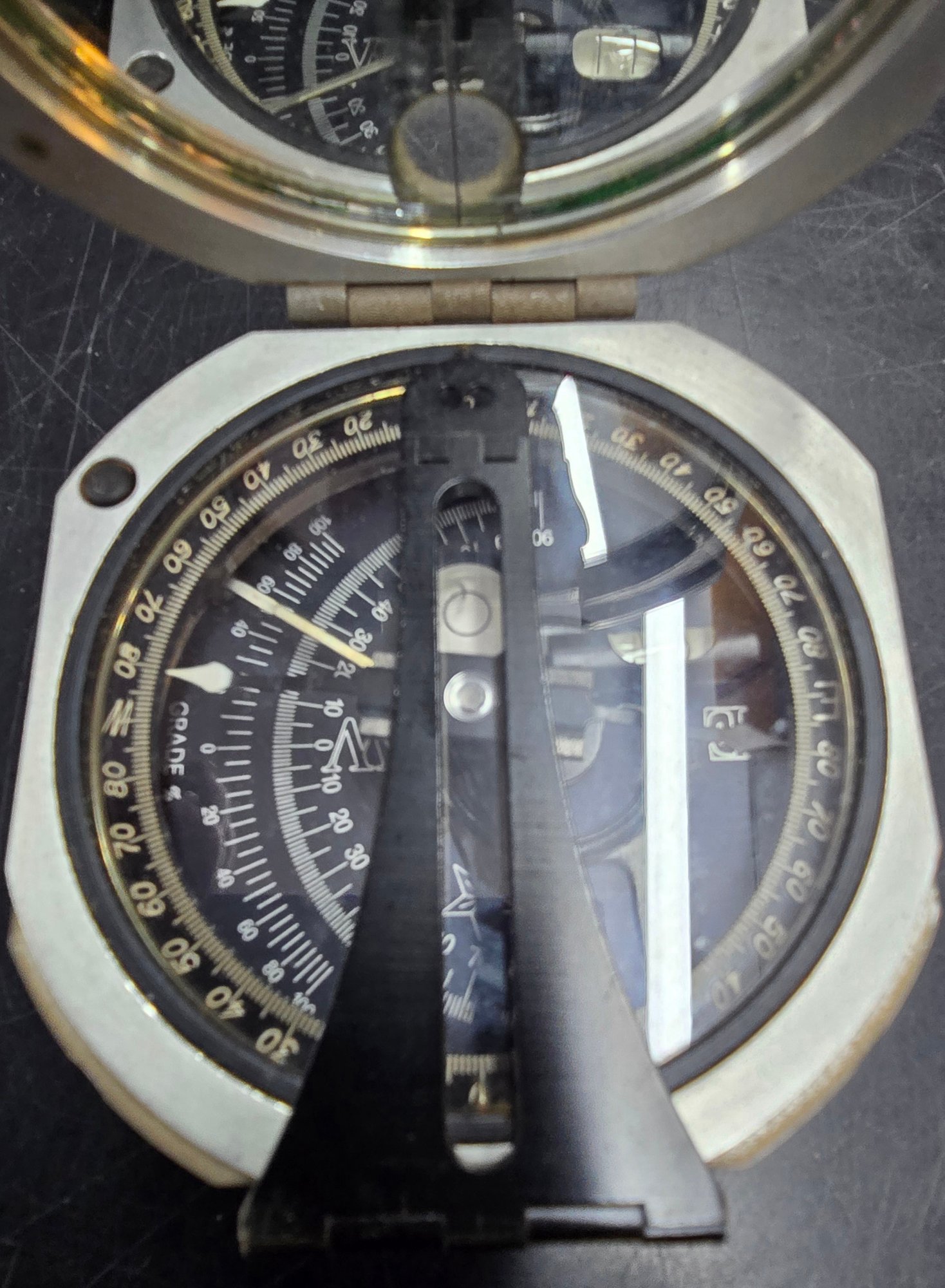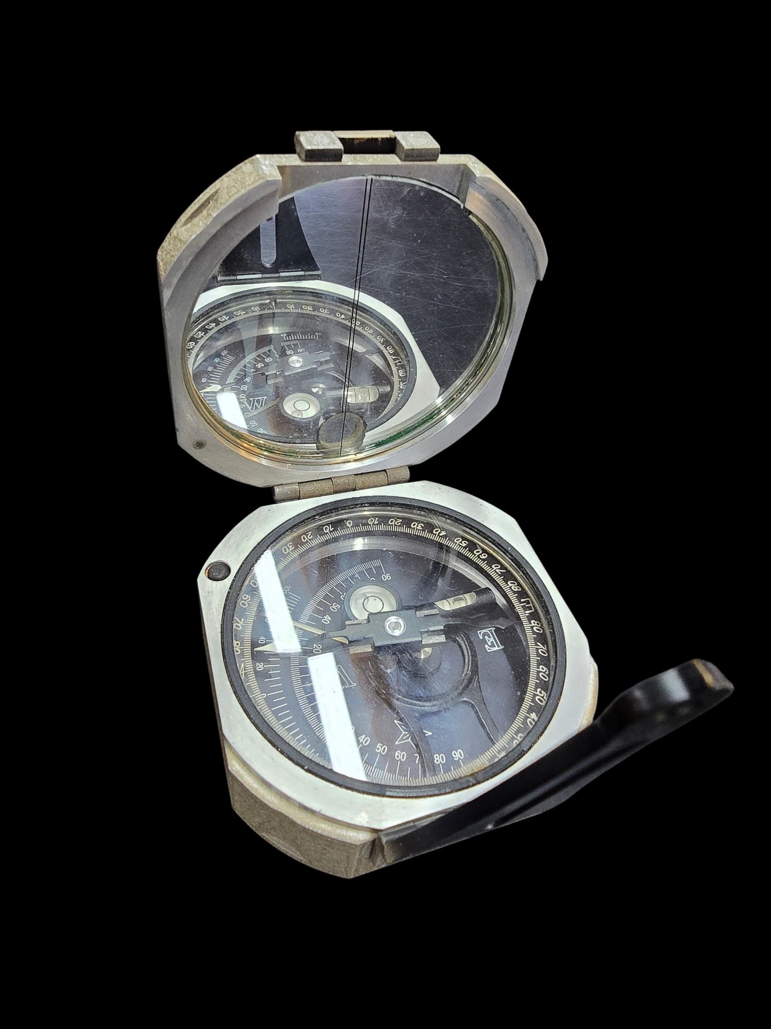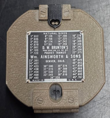 Pocket transit surveying compass made by David W. Bunton functions as a compass, clinometer, and protractor, making it an indispensable tool for geologist, surveyors, and explorers. Compact and durable.