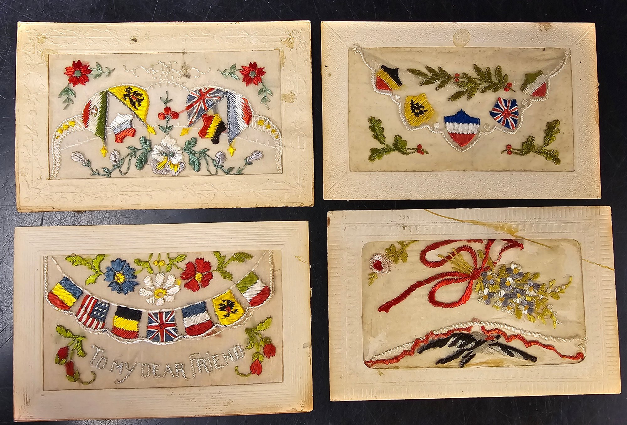 WWI Embroided Postcards threaded postcards, flags, patriotic
