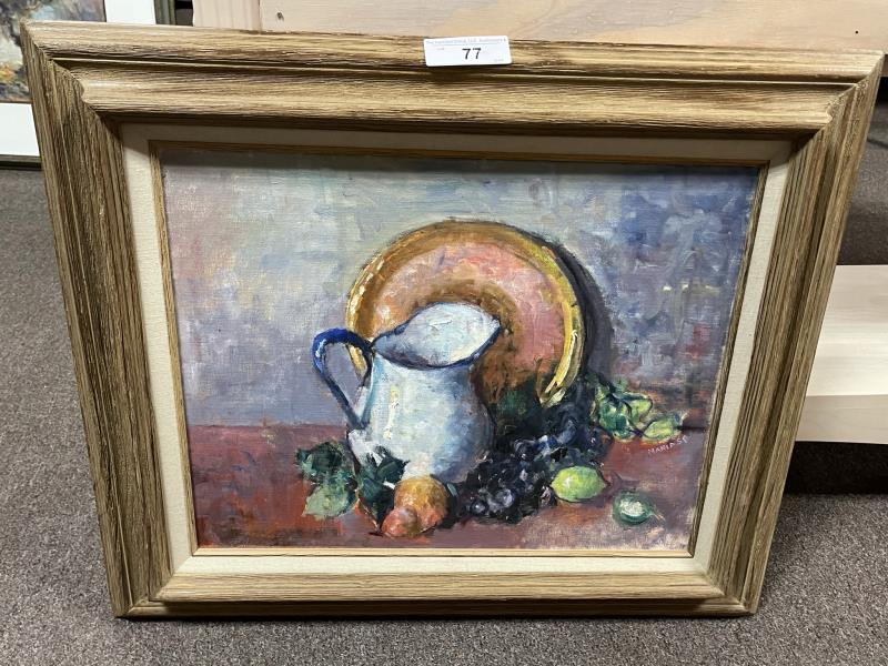 Still Life Oil Painting Signed Right Maria Joseph Nace, 15.5"tall x 19.5" wide w/ 4" Matt & Frame