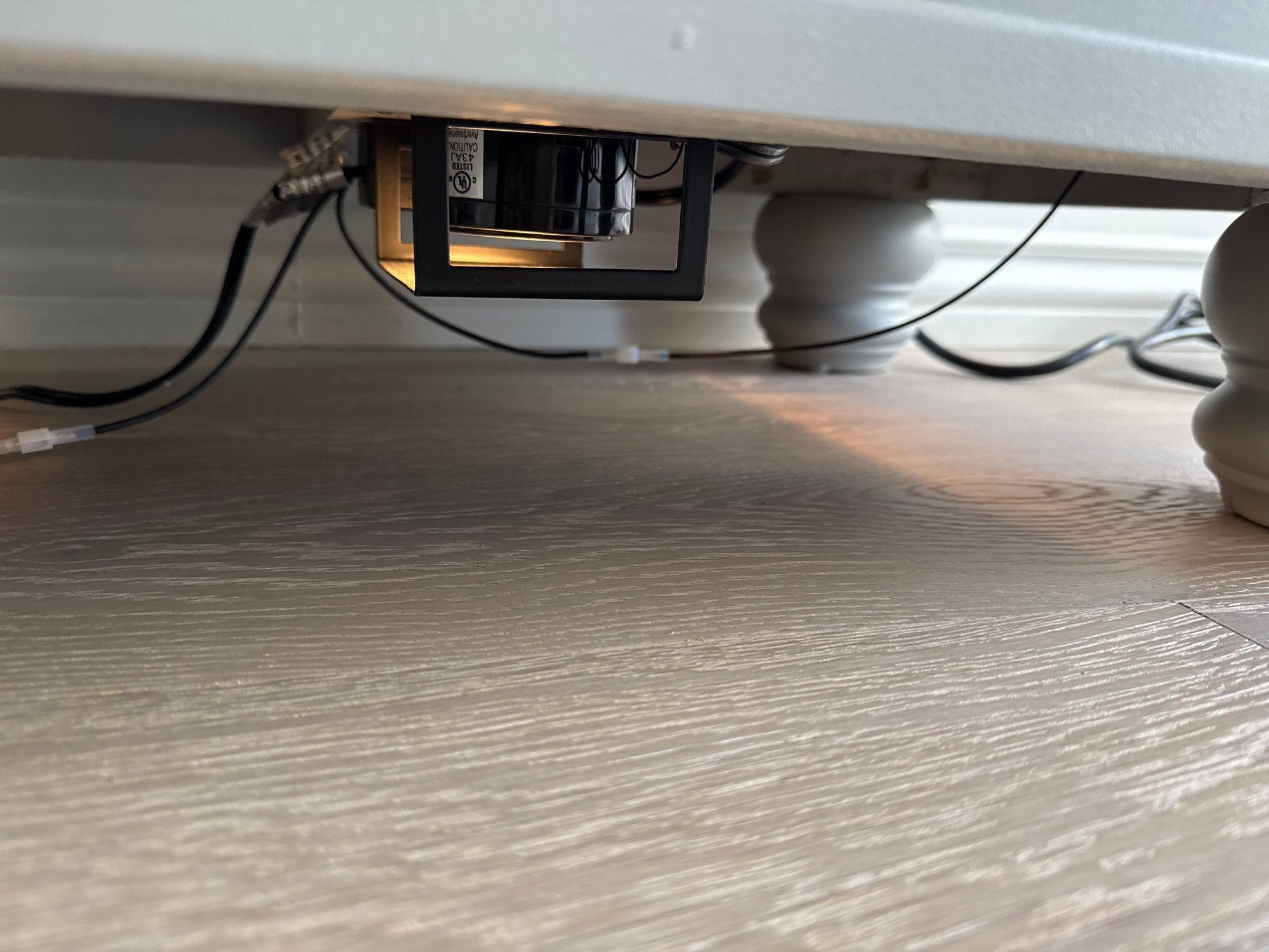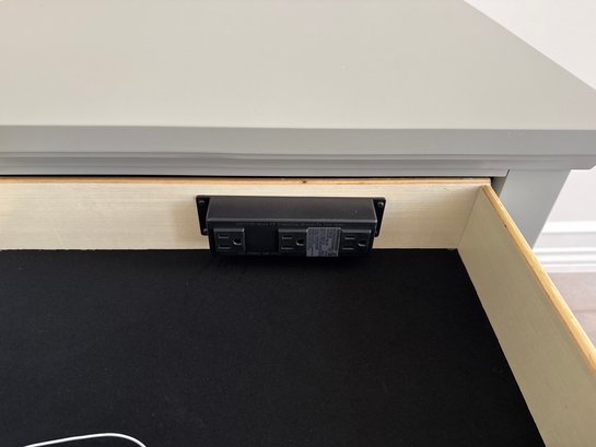 These tables have a plug inside the drawer for hidden charging as well as pathway light under the chest .