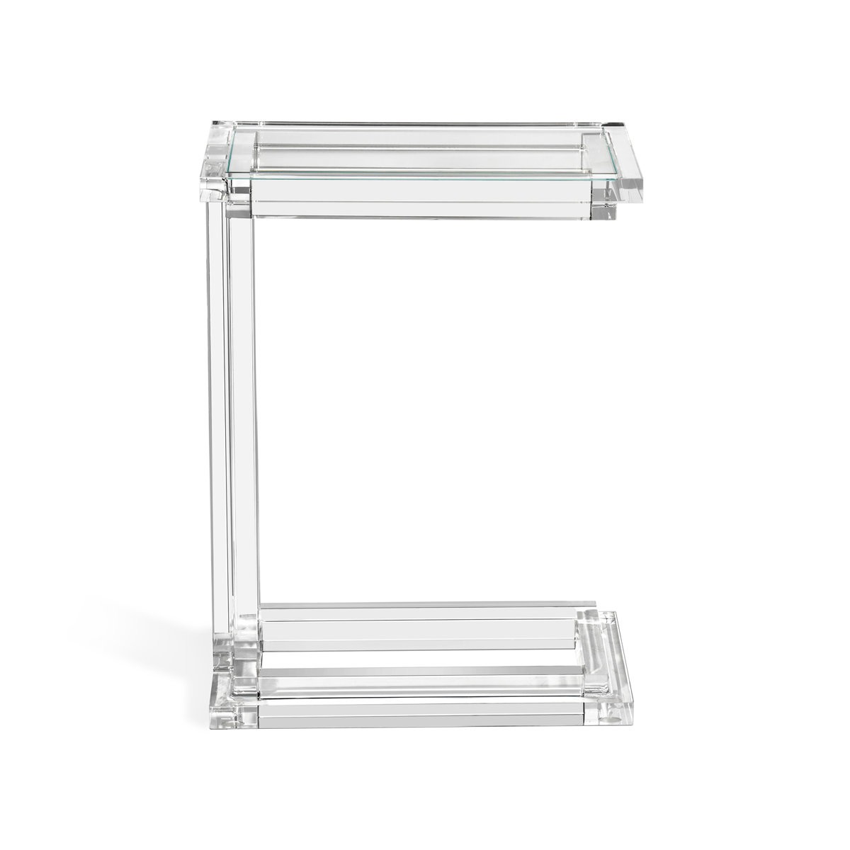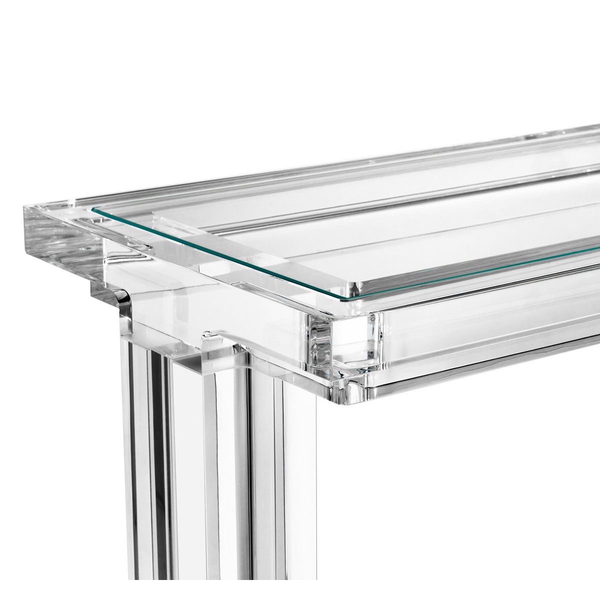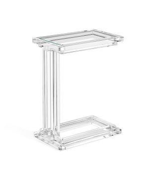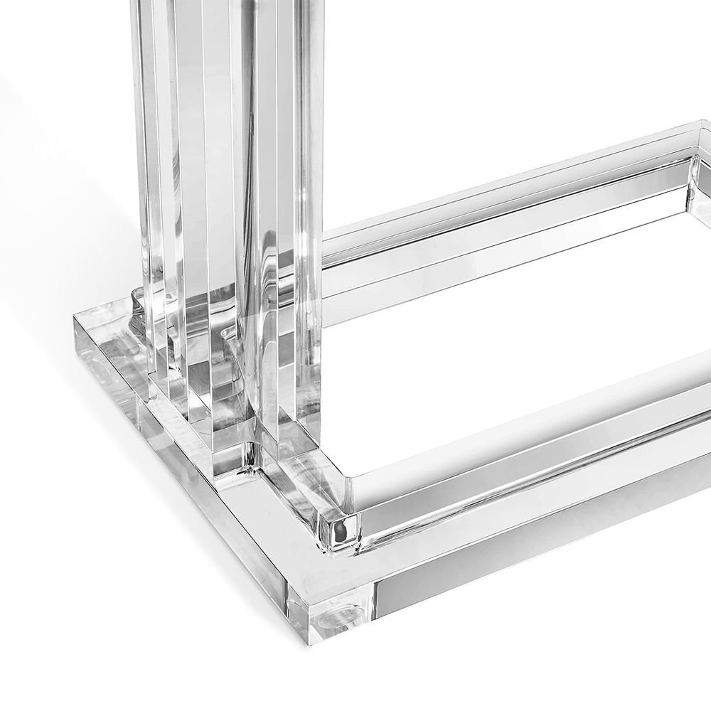 Clear acrylic and crystal glass transform the Elle Hugging Table into a versatile of-the-moment statement. Intricate channeling along the legs and apron elevates this classic silhouette.
