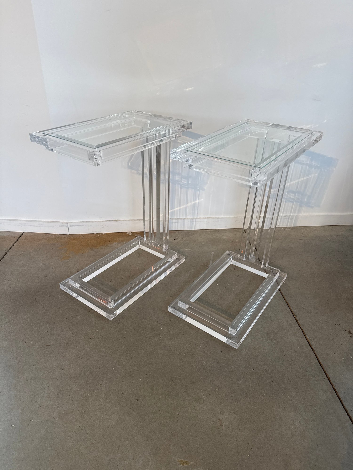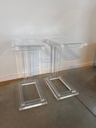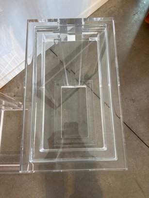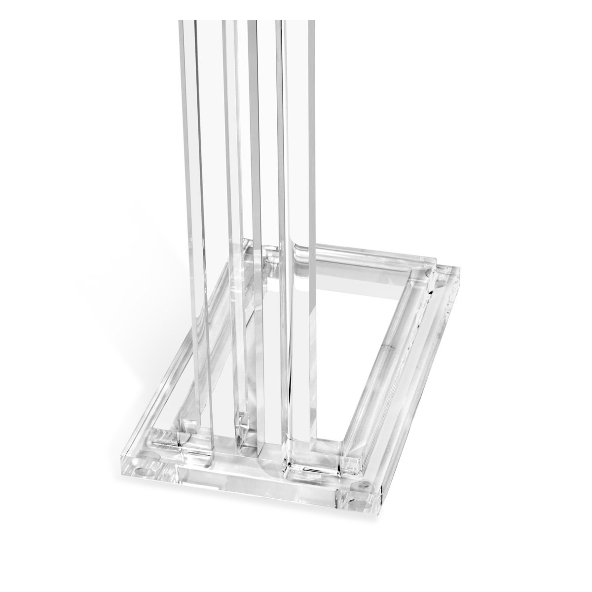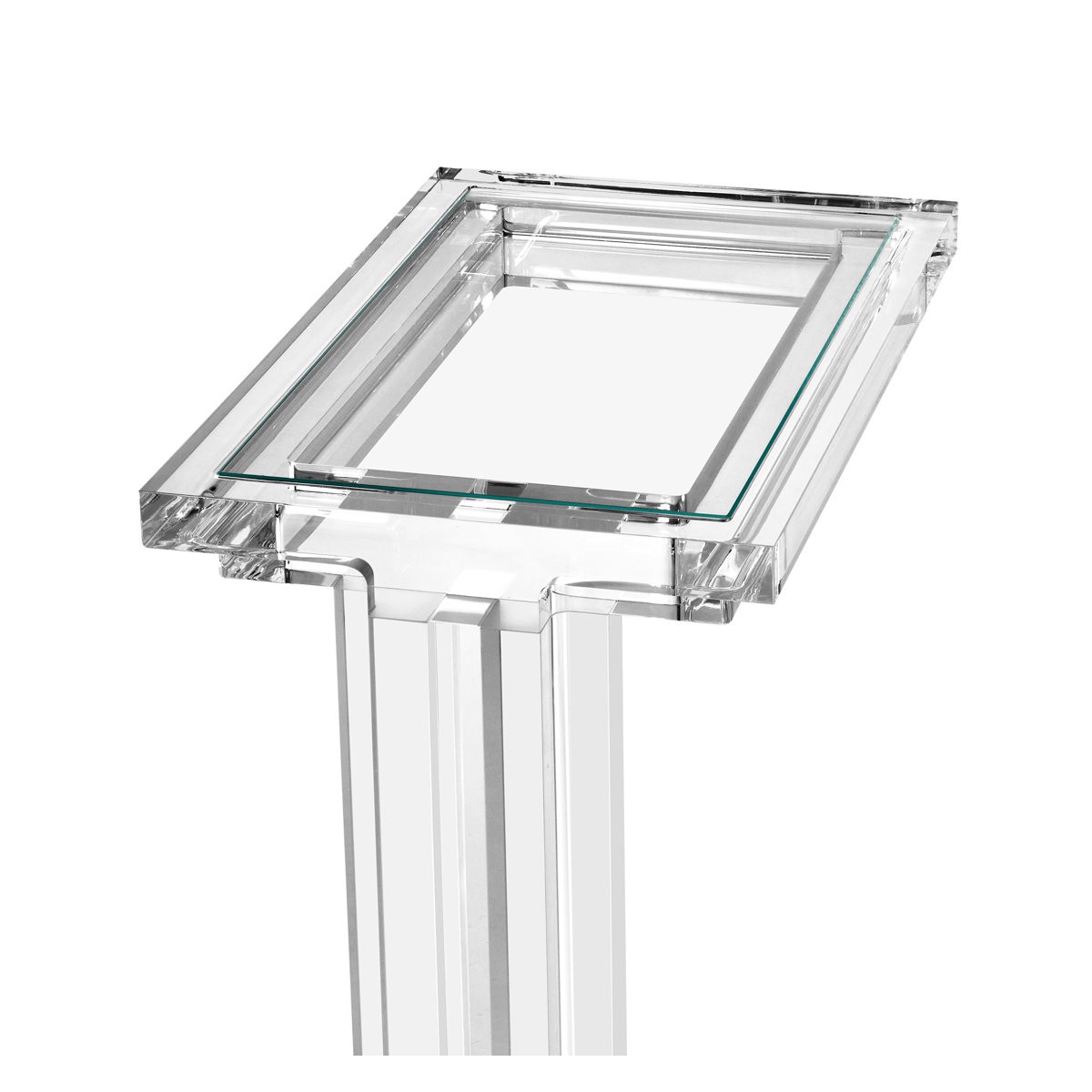Clear acrylic and crystal glass transform the Elle Hugging Table into a versatile of-the-moment statement. Intricate channeling along the legs and apron elevates this classic silhouette.