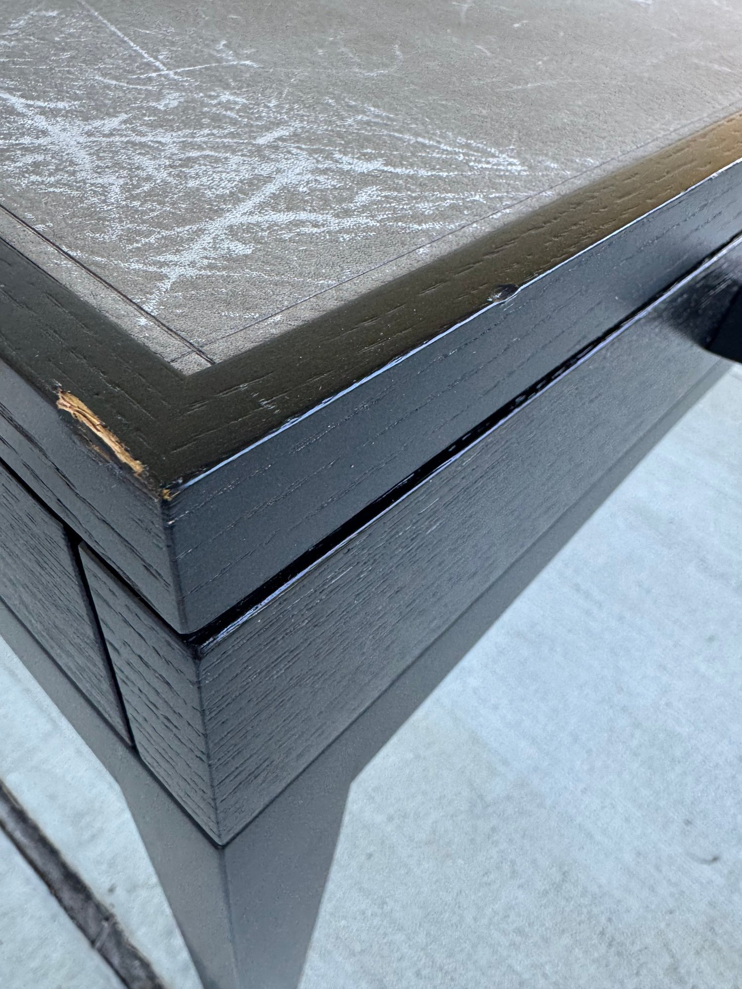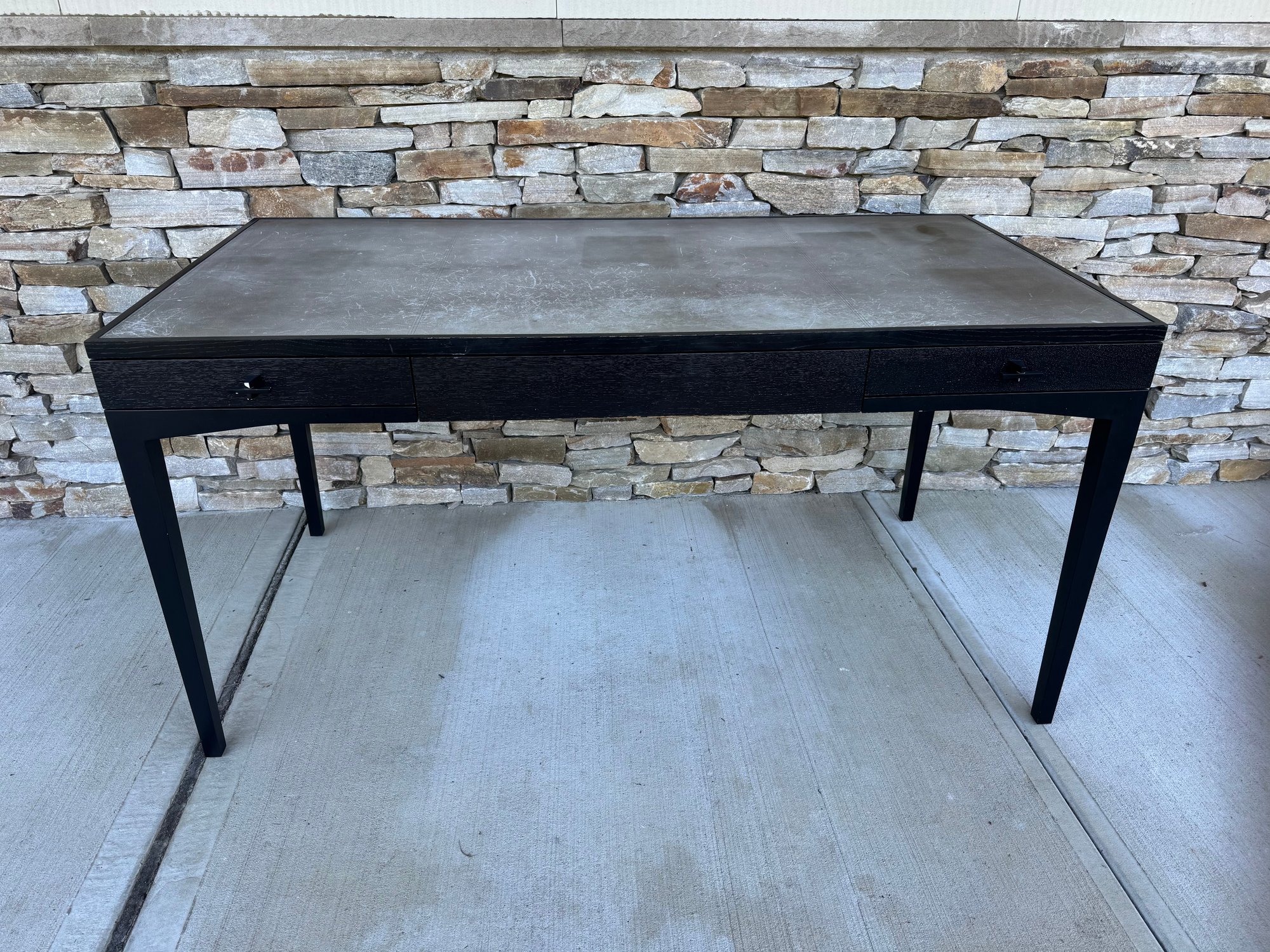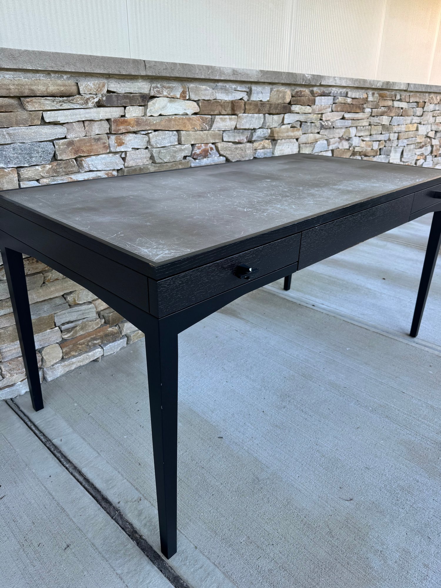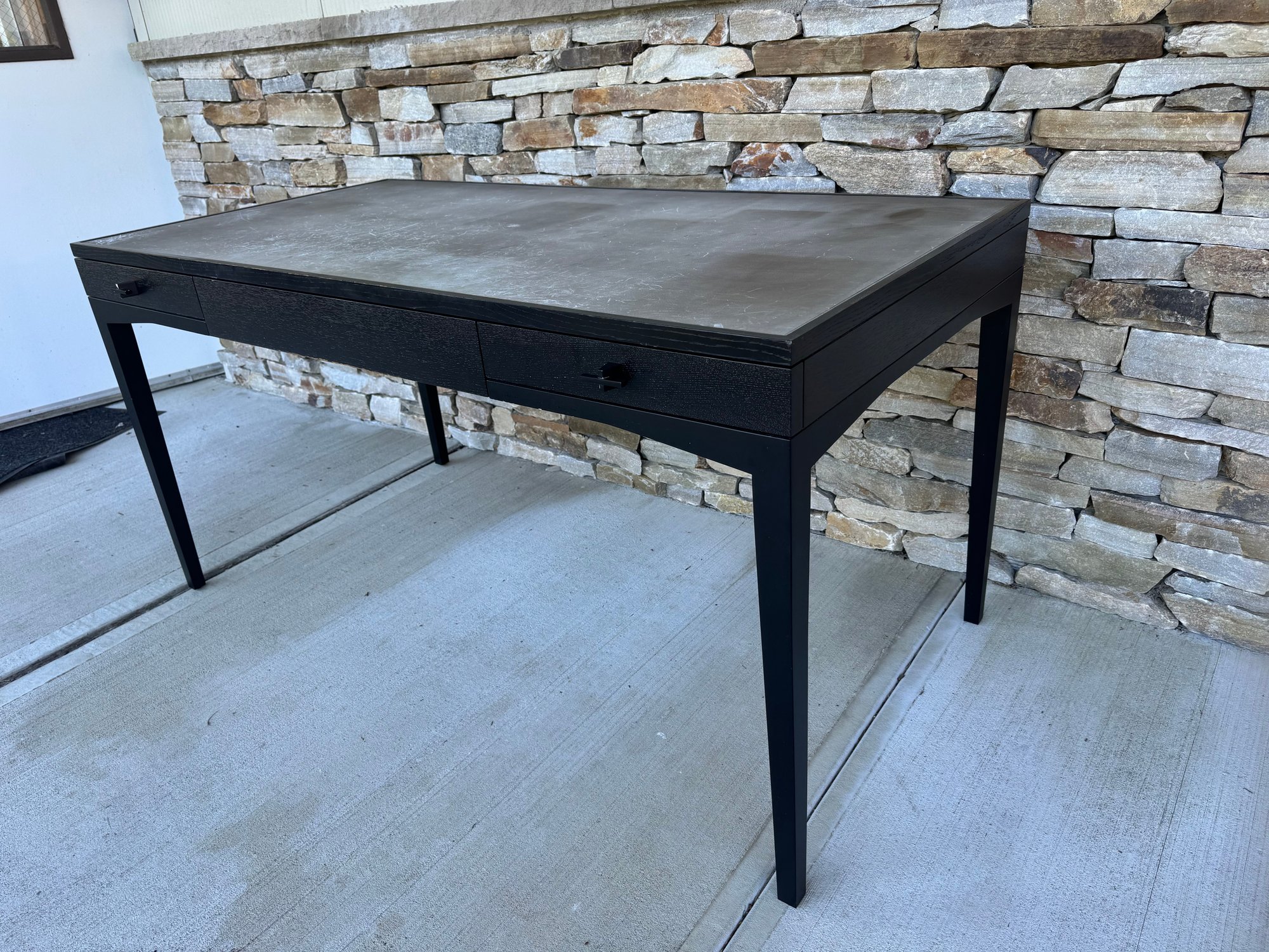 Minimal and slender, the Scribe Desk’s simple lines are a nod to Chicago’s pristine architecture. Composed of wood, metal and stunning tooled leather, the desk balances refined craftsmanship with an airy look and feel. The drawers are finished with curvilinear hardware, which adds a tactile, industrial touch.
