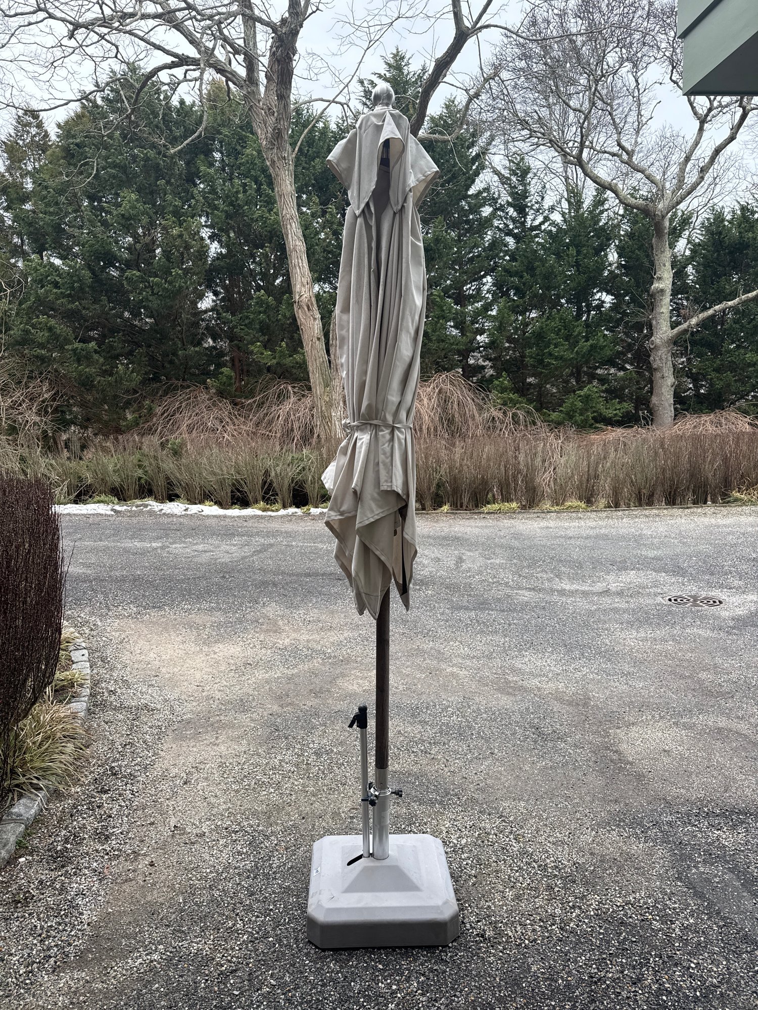 LiRo Midi Plus 29" Portable Square Umbrella Base with Wheels is the perfect solution for moving umbrellas with ease. Fits umbrella poles 1 3/4" - 2 5/8" and Features wheels and a handle for portability, making it a one-of-a-kind product. Move your umbrella around the patio or pool deck with ease with this portable base
