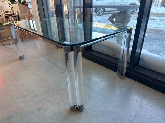 A Charles Hollis Jones 1970s. Lucite and Glass Dining Table - 78" × 41.5"