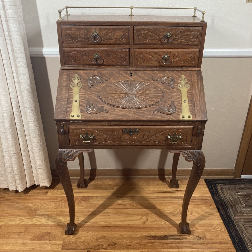 Antique Carved Detail Slat Top Writing Desk