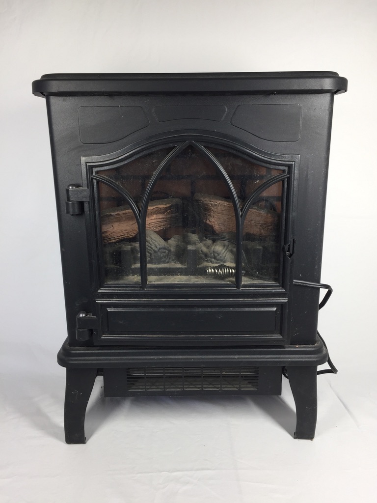 Black Metal Electric Fireplace (see Photos- Needs New Power Switch)