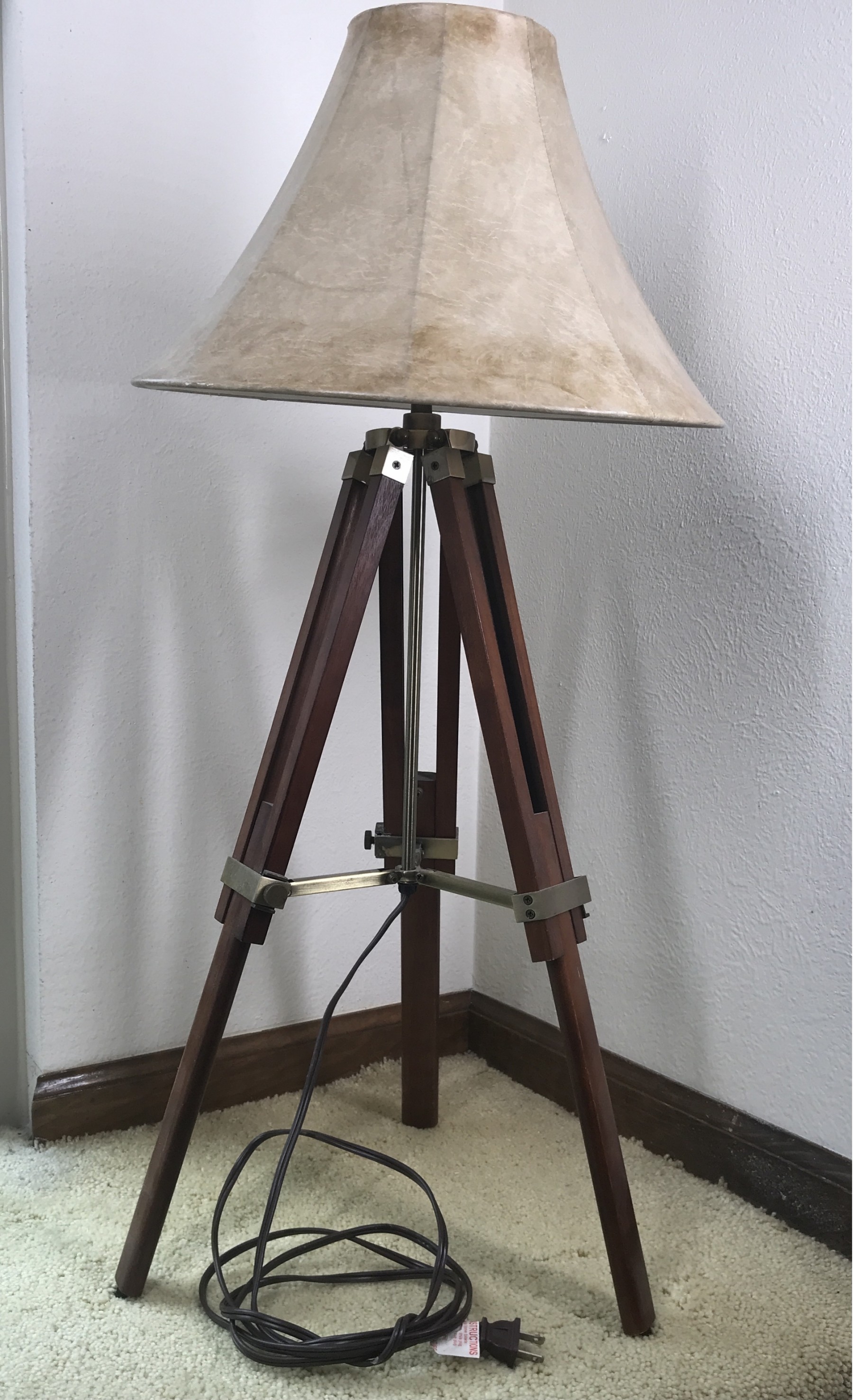 Cool Extending Wooden Tripod Lamp With Leather Lampshade
