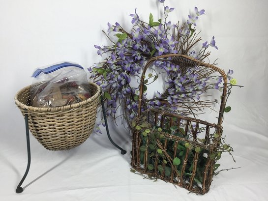 Faux Floral Decor Set With Wicker Basket