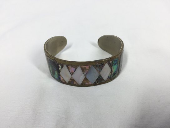 Vintage Metal Cuff With Abalone Inlay