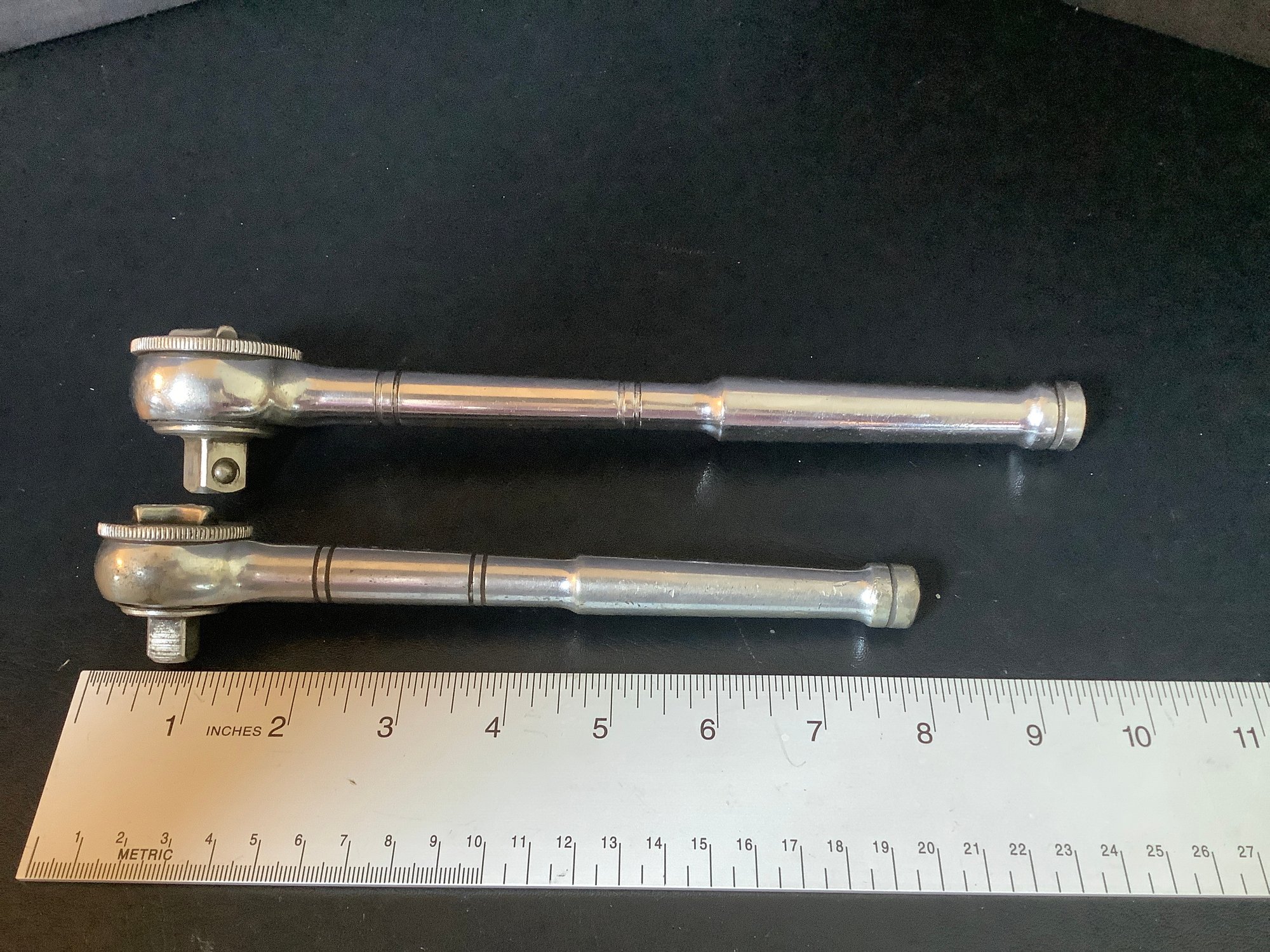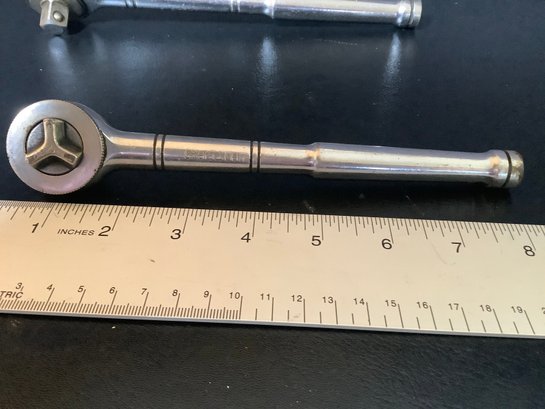 2 Craftsman thumb wheel Drive ratchets. Includes # 43797 1/2” drive ratchet and 3/8” drive #43796 ratchet. Photos are part of the description. Preowned.