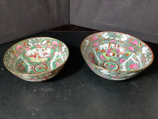 2 Japanese Porcelain Ware Bowls. Hand painted in Hong Kong. Large bowl size is 8-1/4” x 8-1/4” x 3-1/4” tall and small bowl 7” x 7” x 3” tall. Photos are part of the description . Preowned. NO SHIPPING!!